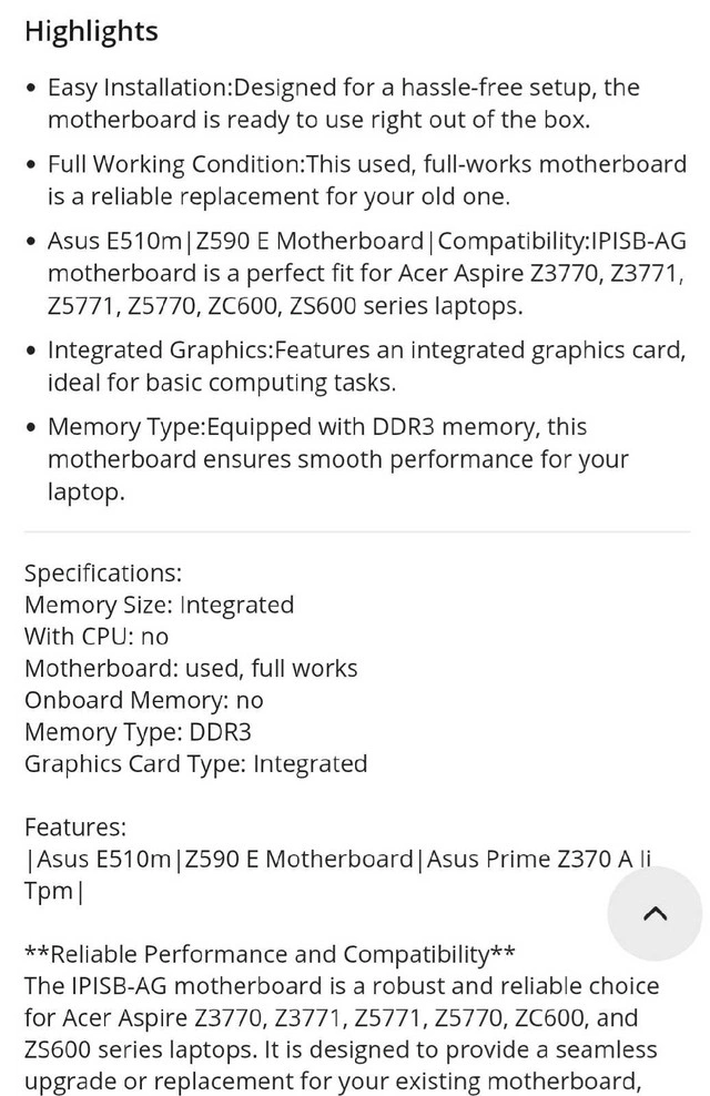 Acer Aspire Z3770 Z3771 Z5771 Z5770 ZC600 ZS600 Series motherboard. Brand new ✨