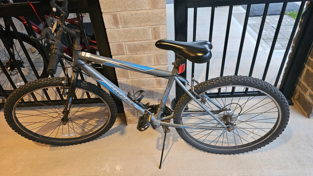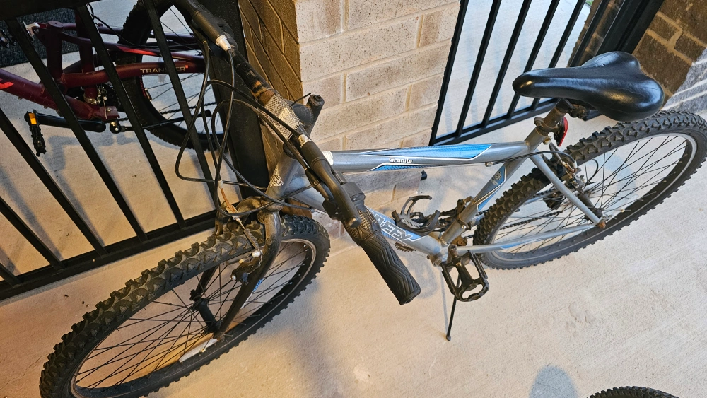 Selling a Husky Granite mountain bike. It's got a sturdy frame and is ready for some off-road adventures. It has a water bottle holder installed too