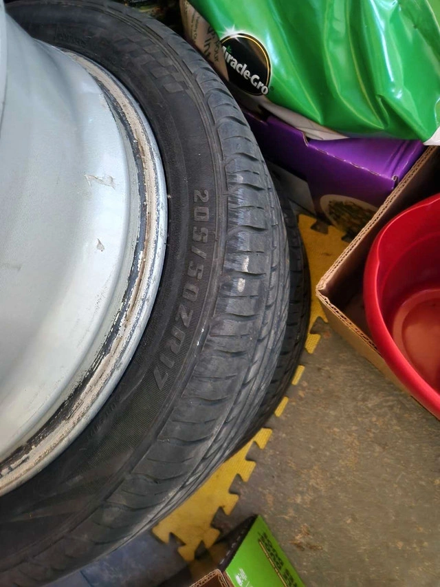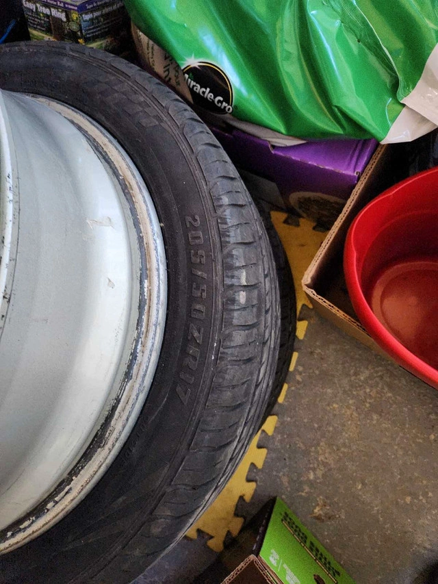 10Mazda 5 original rims, 5 door 2 all season tires on rims and 1 no rim. 3 available Size 205 R 17 Tires by Vehicle Type: SUV & Light Truck Tires by Season: All Season Tire Brand: General For Sale By: Owner Tire size (diameter): 17 in.