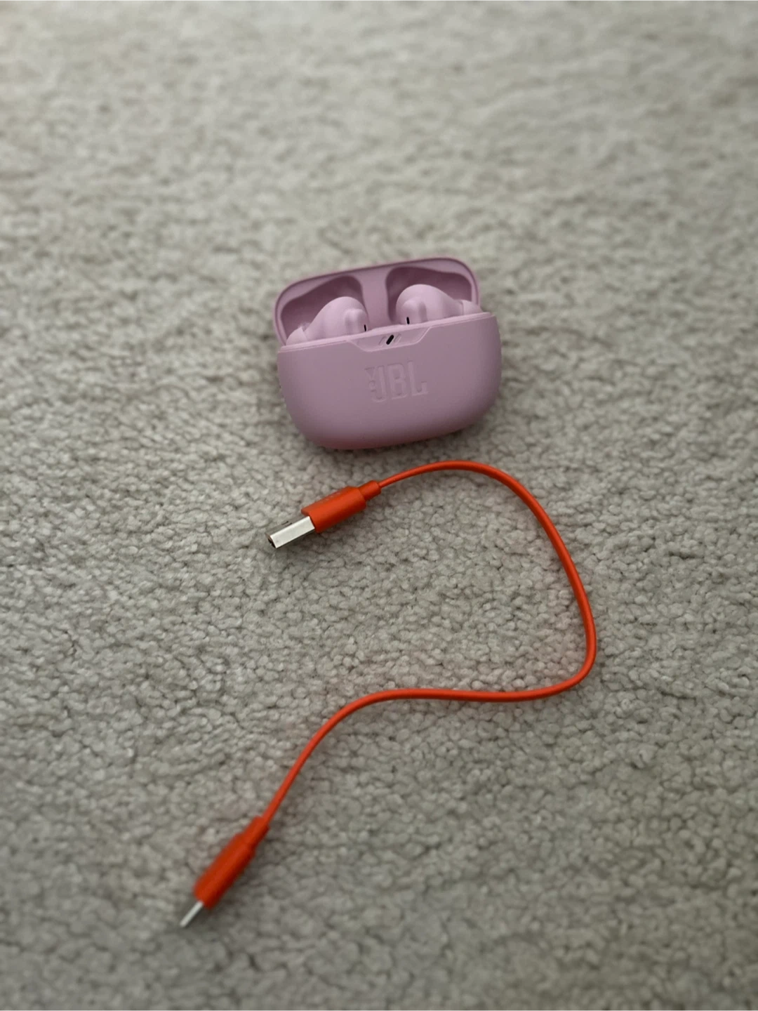 Selling a pair of JBL wireless earbuds in a lovely lilac colour! They come with their charging case and a charging cable. Great for listening to your favourite tunes on the go