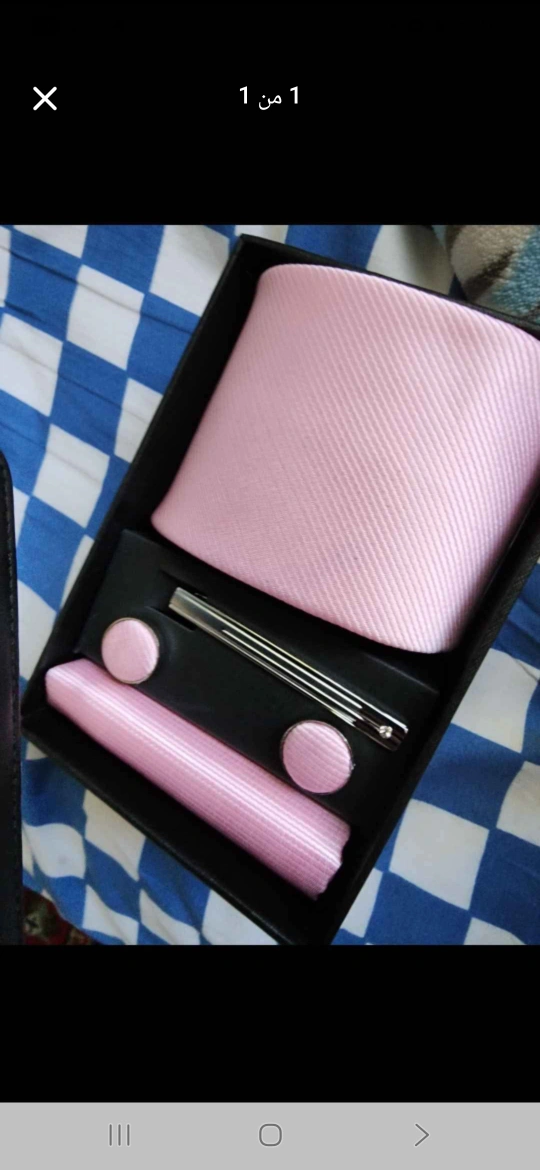 93Selling a brand new tie set, perfect for adding a touch of colour to any outfit! This set includes: - A pink tie - Matching pocket square - A pair of cufflinks - A tie clip Comes in a box, making it a great gift idea!