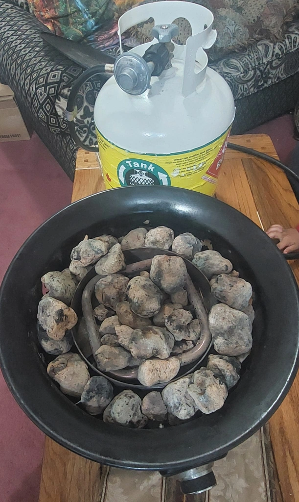 Selling an Outland Firebowl propane fire pit. It's in used condition and ready to warm up your outdoor space tank is empty for $30 fire pit 70