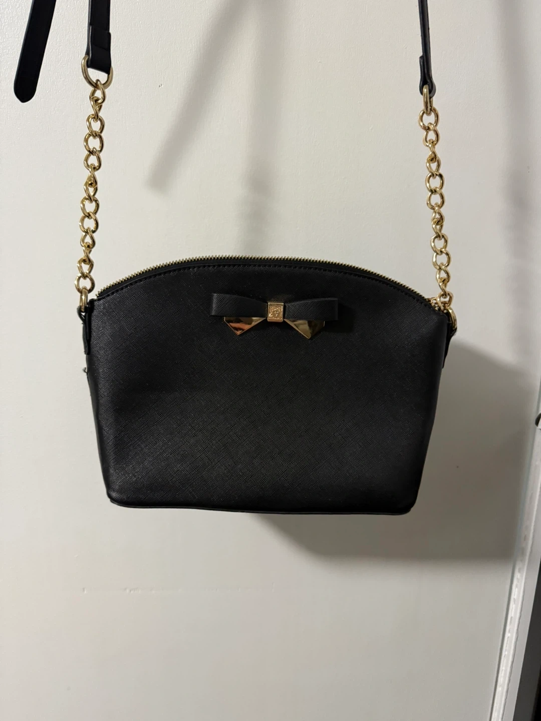 Selling a cute Anne Klein crossbody bag! It's black with a gold chain strap and a bow detail. Perfect for a night out or just running errands around town. This bag is in excellent condition no wear and clean inside and out.