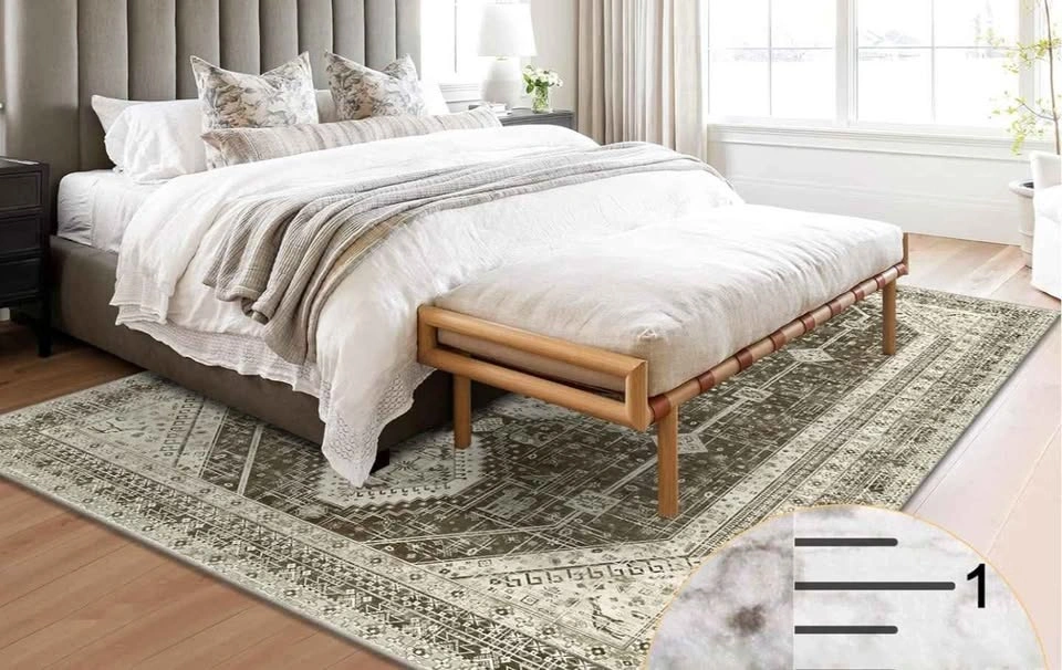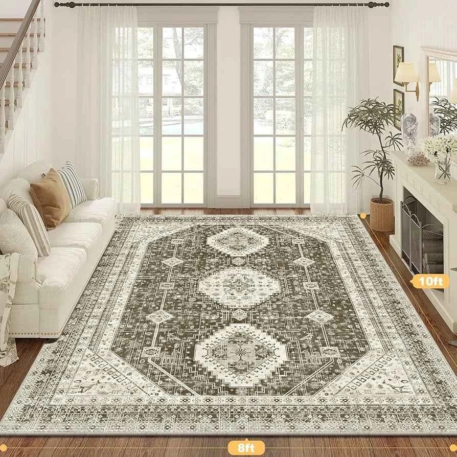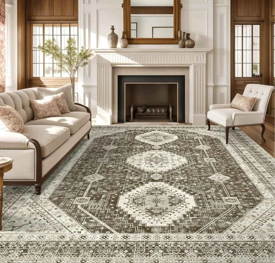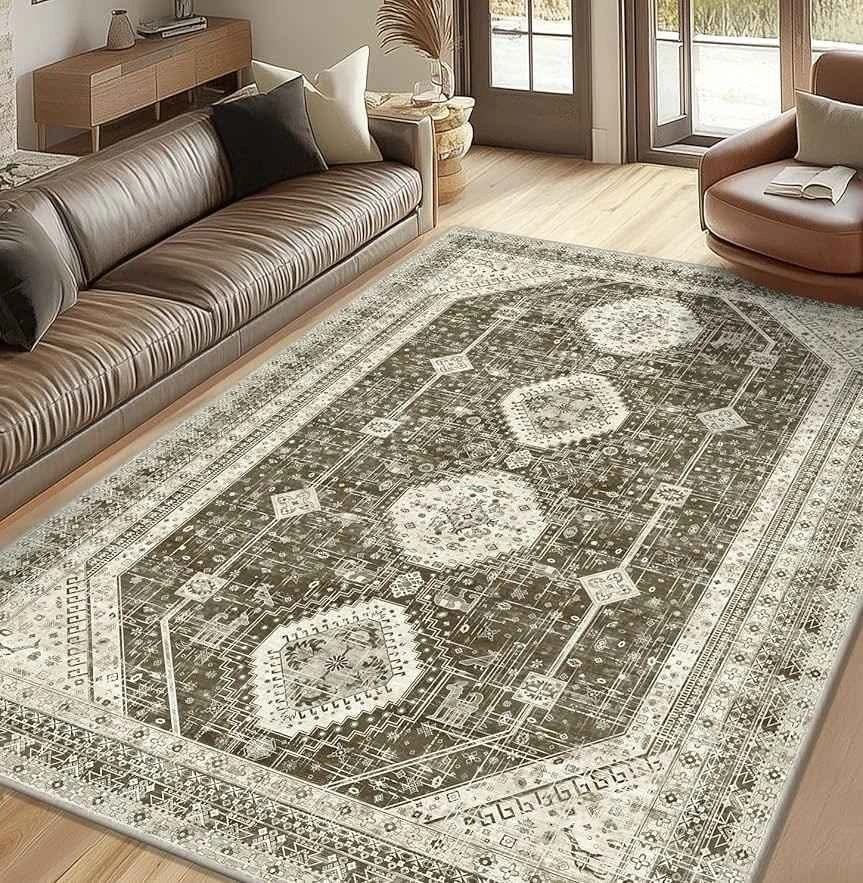 30Bring timeless charm into your home with this vintage-style area rug in a rich bronze and ivory palette. Its intricate geometric pattern adds a grounded, elegant feel to any living room, bedroom, or dining space — the kind of designer look that transforms a room without the designer price tag. Why you’ll love it ➛ Oversized 8x10 size – perfect for large spaces ➛ Beautiful vintage-inspired pattern in a neutral bronze tone ➛ Washable and easy to maintain – ideal for busy homes ➛ Soft underfoot yet durable enough for high-traffic areas ➛ Brand new and ready to elevate your space Policies ➛ Serious buyers only ➛ By appointment pickup ➛ Sorry, no delivery We have tons of rugs, comforters, and lighting available.