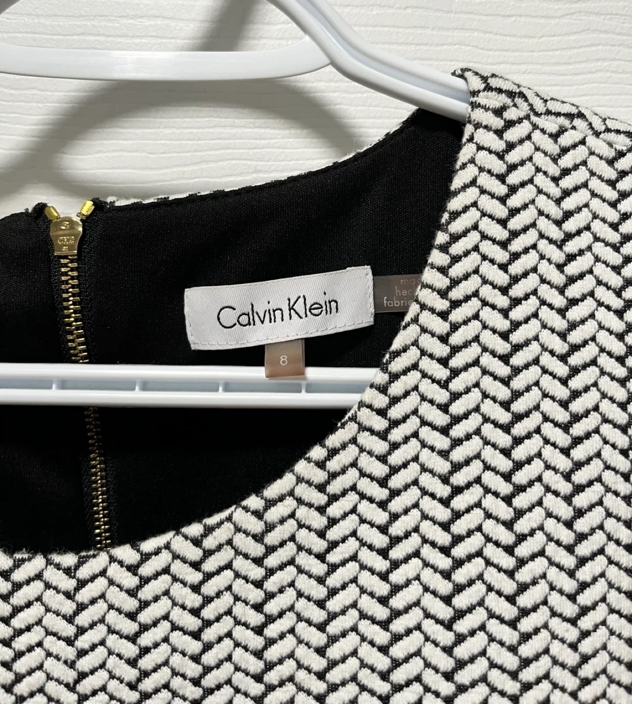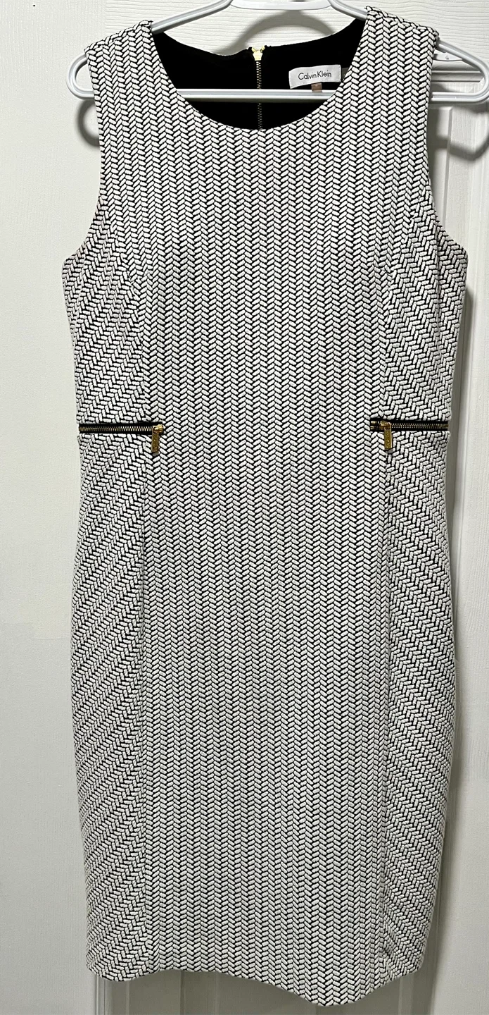 10Selling a Calvin Klein dress in black and white. It's a size 8 and features a unique pattern. Perfect for any occasion!