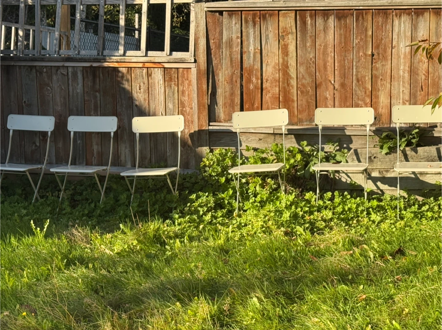 Selling some folding metal chairs. They're perfect for extra seating in the backyard or on the patio. They are in good condition and ready for a new home