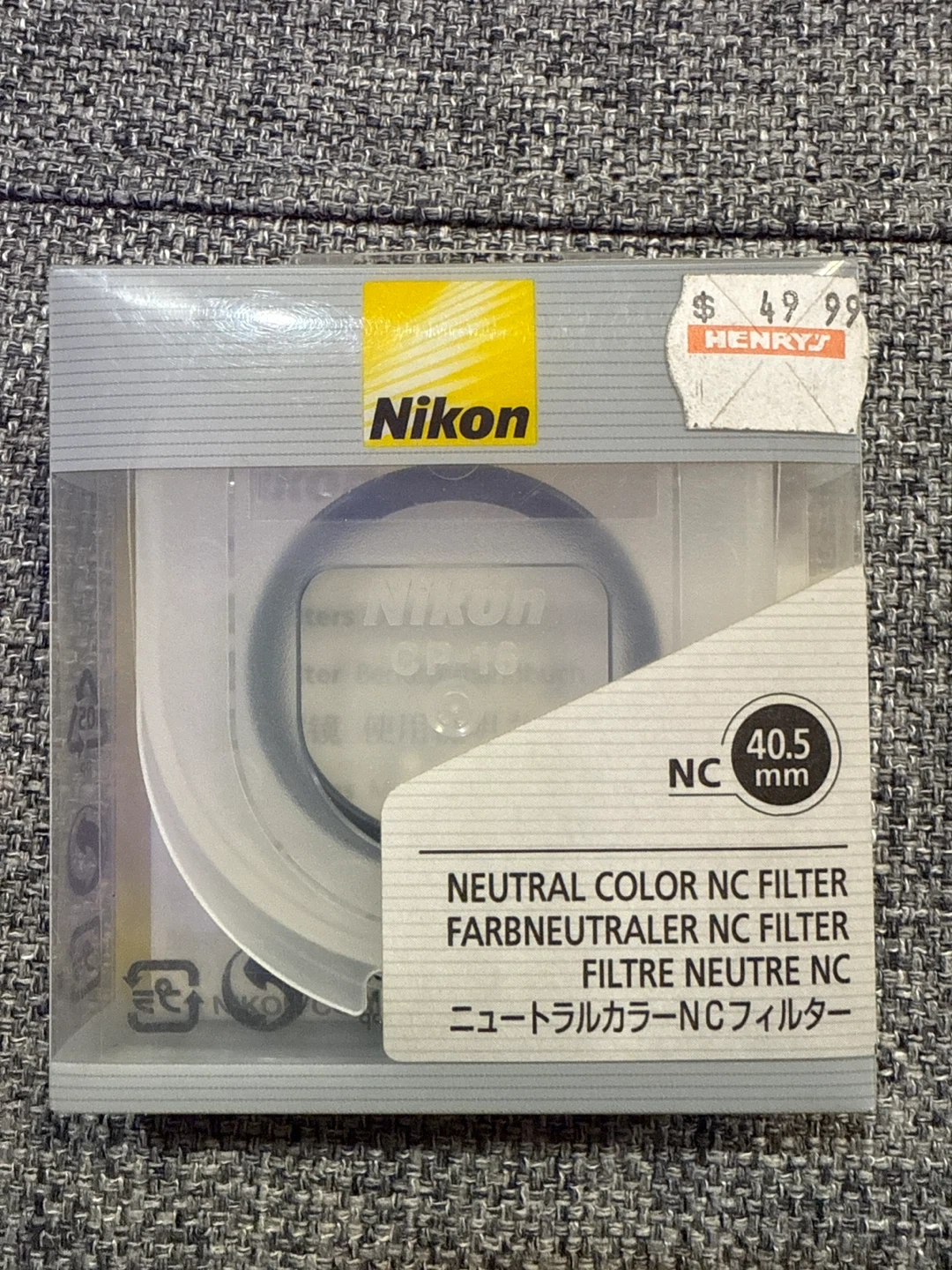 Buy & SellNikon 40.5mm Neutral Color NC Filter - NewNikon 40.5mm Neutral Color NC Filter - New$32Selling a brand new Nikon 40.5mm Neutral Color NC Filter! It's still in its original packaging.BrandNikonWHERE TO MEETCheck LocationView MapSELLERPaul UpadhyayChurchill Meadows181 review0 chats·0 favorites·1 views