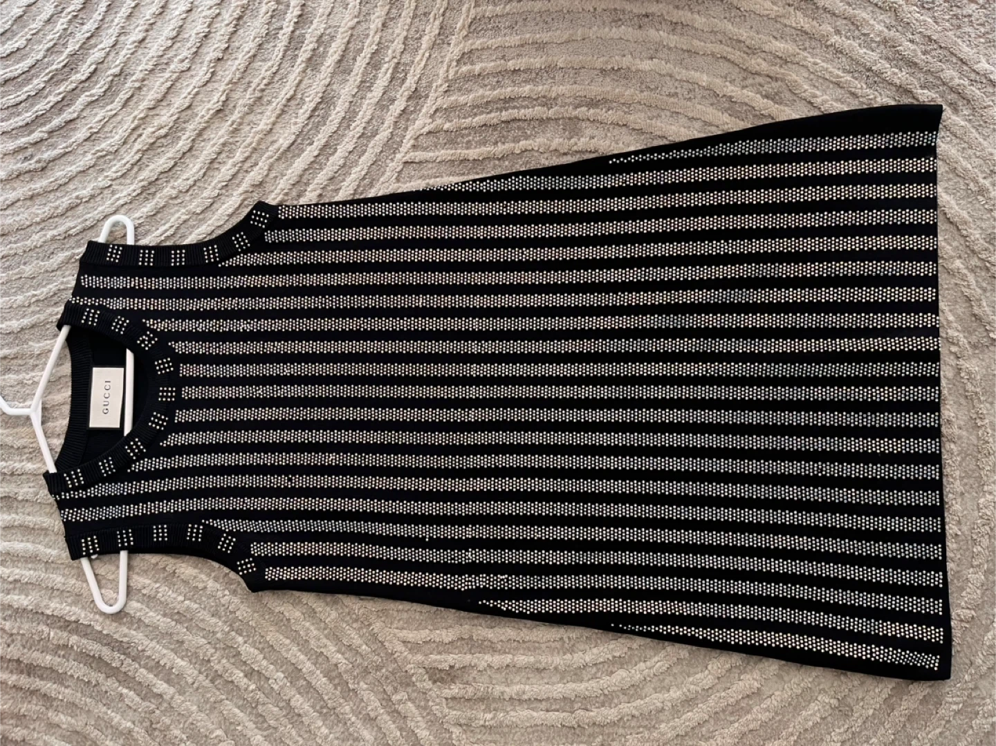 Selling a stylish black sleeveless dress. This dress features a unique rhinestone pattern. Perfect for a chic and sophisticated look!