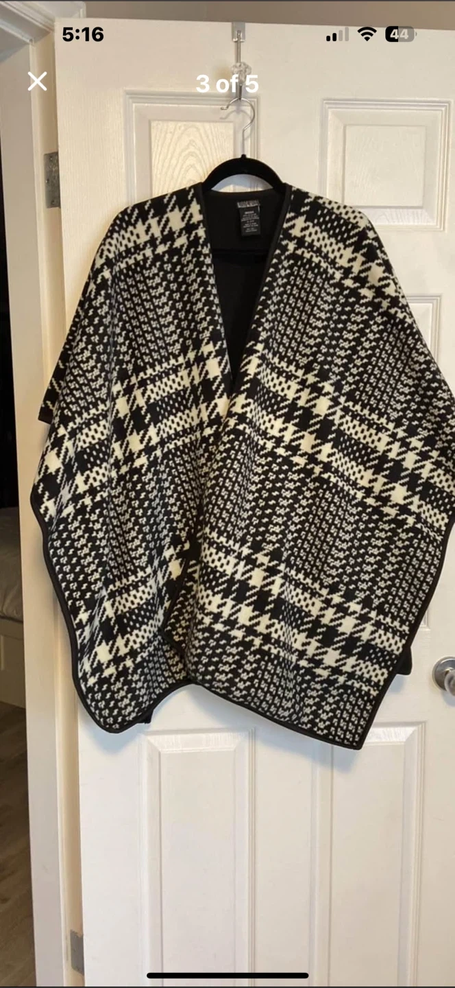 Cozy up in this stylish Original Nicola Waite poncho! It features a classic houndstooth pattern in black and white. This poncho is a one-size-fits-all and made of 100% polyester, perfect for adding a touch of elegance to any outfit