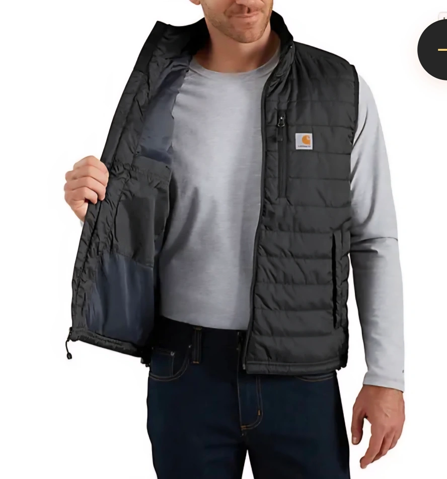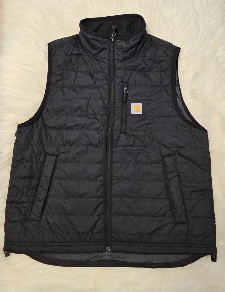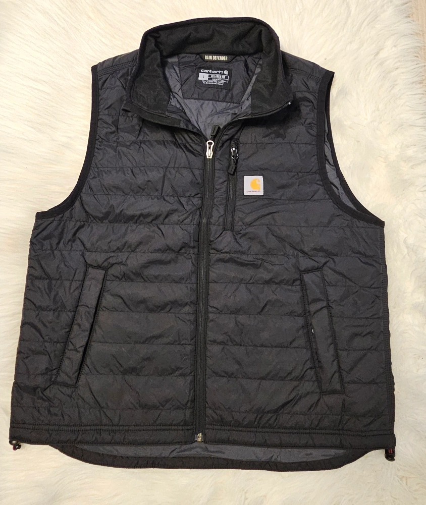 131Keep cozy with this Carhartt Rain Defender relaxed fit vest! It's a size Large and perfect for layering. The vest features a quilted design and the classic Carhartt logo. Great for adding warmth without restricting movement! -New, No Tag