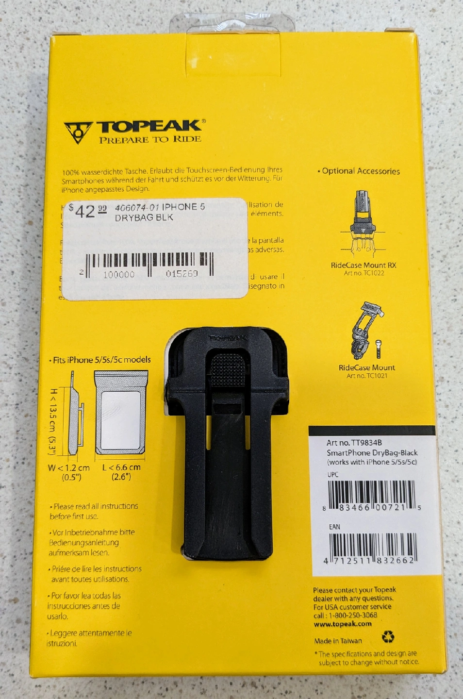 Iphone 5/5s/5c dry bag case for sale. This is meant as a bicycle attachment (can be used as a regular case as well), is waterproof and brand new. Brand is topeak. Retail for between $20 and $40