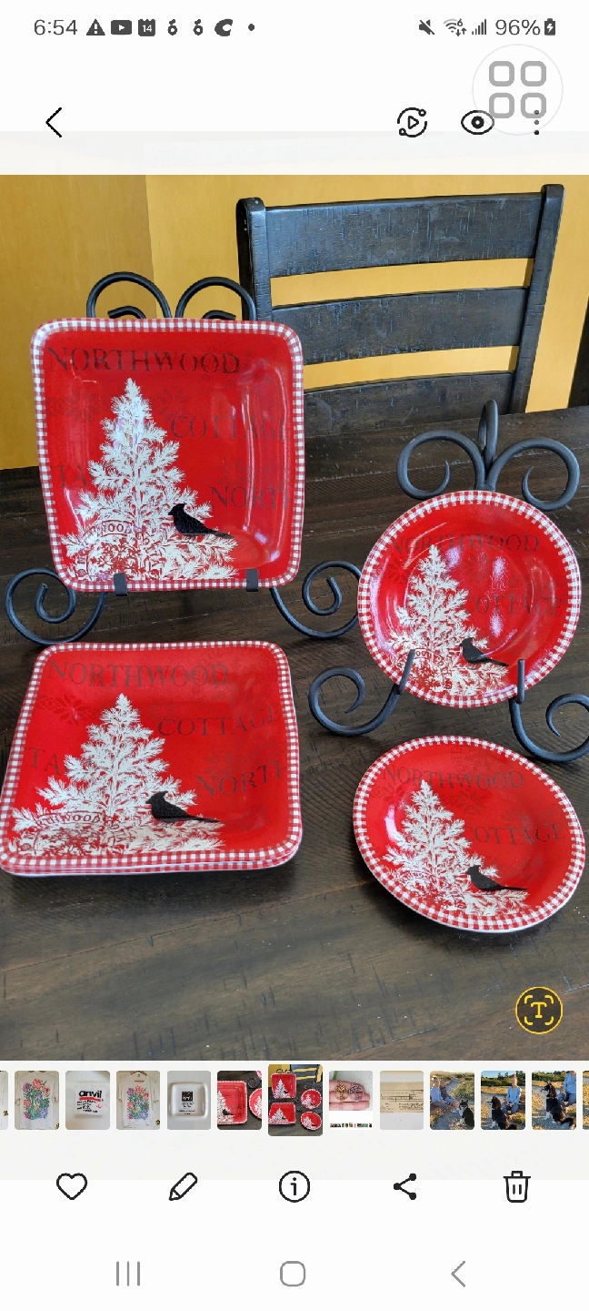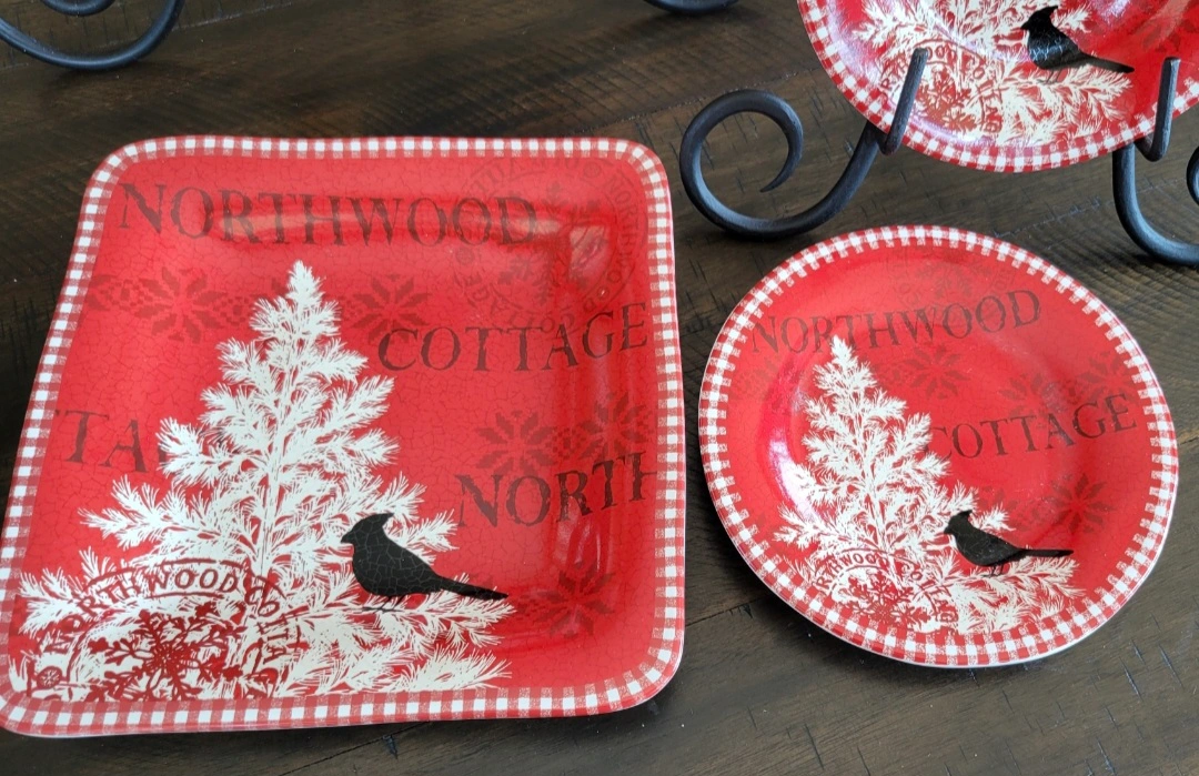 These aredinnerware plates from the 222 Fifth Northwood Cottage collection. The collection features a rustic, holiday-themed design with a cardinal and a winter woodland scene. The plates are made of porcelain and are both microwave and dishwasher safe. Perfect for adding a touch of charm to your table setting!