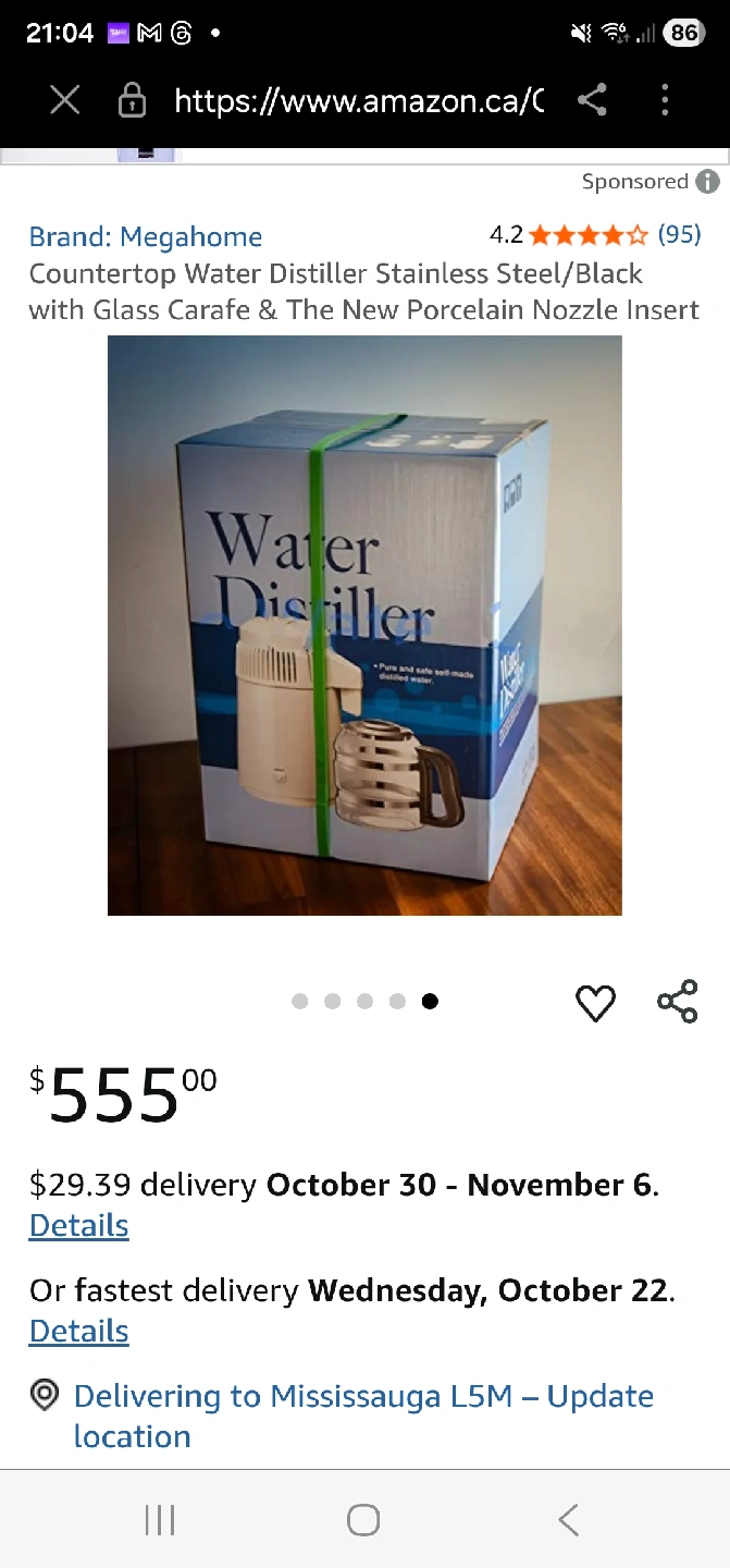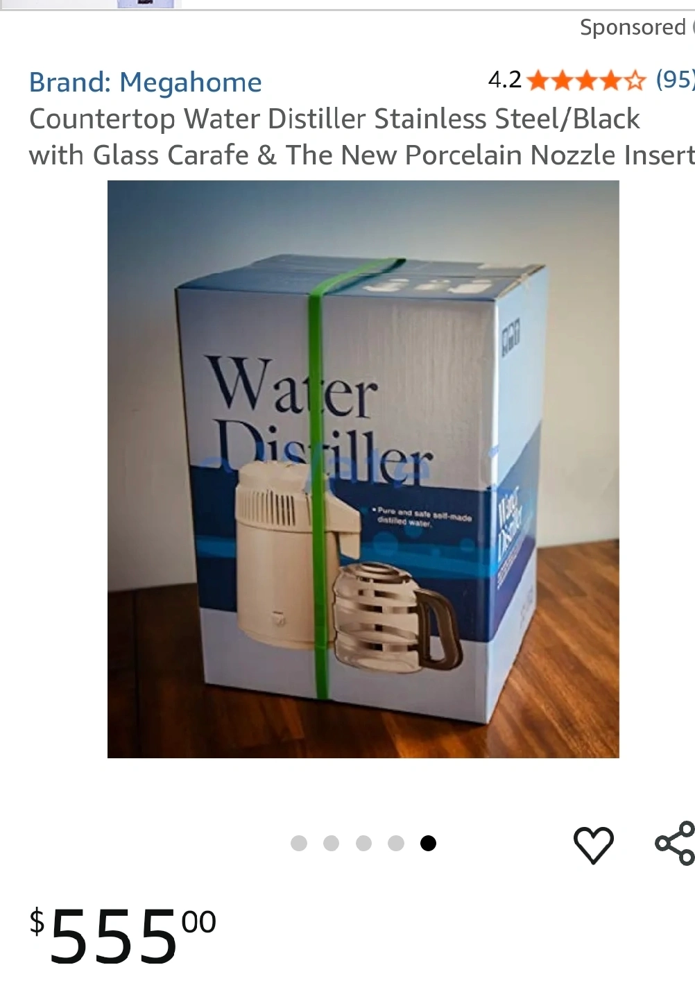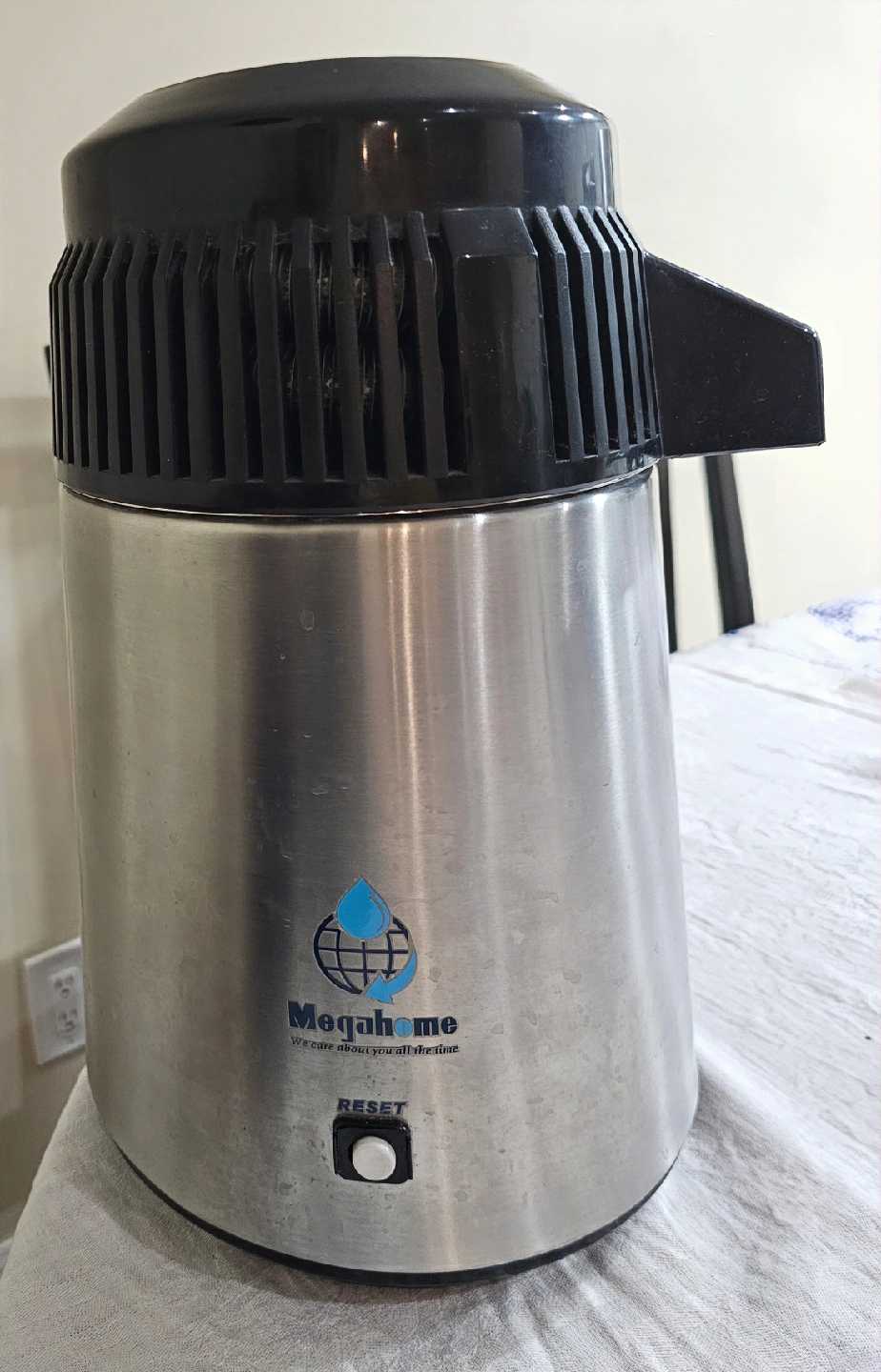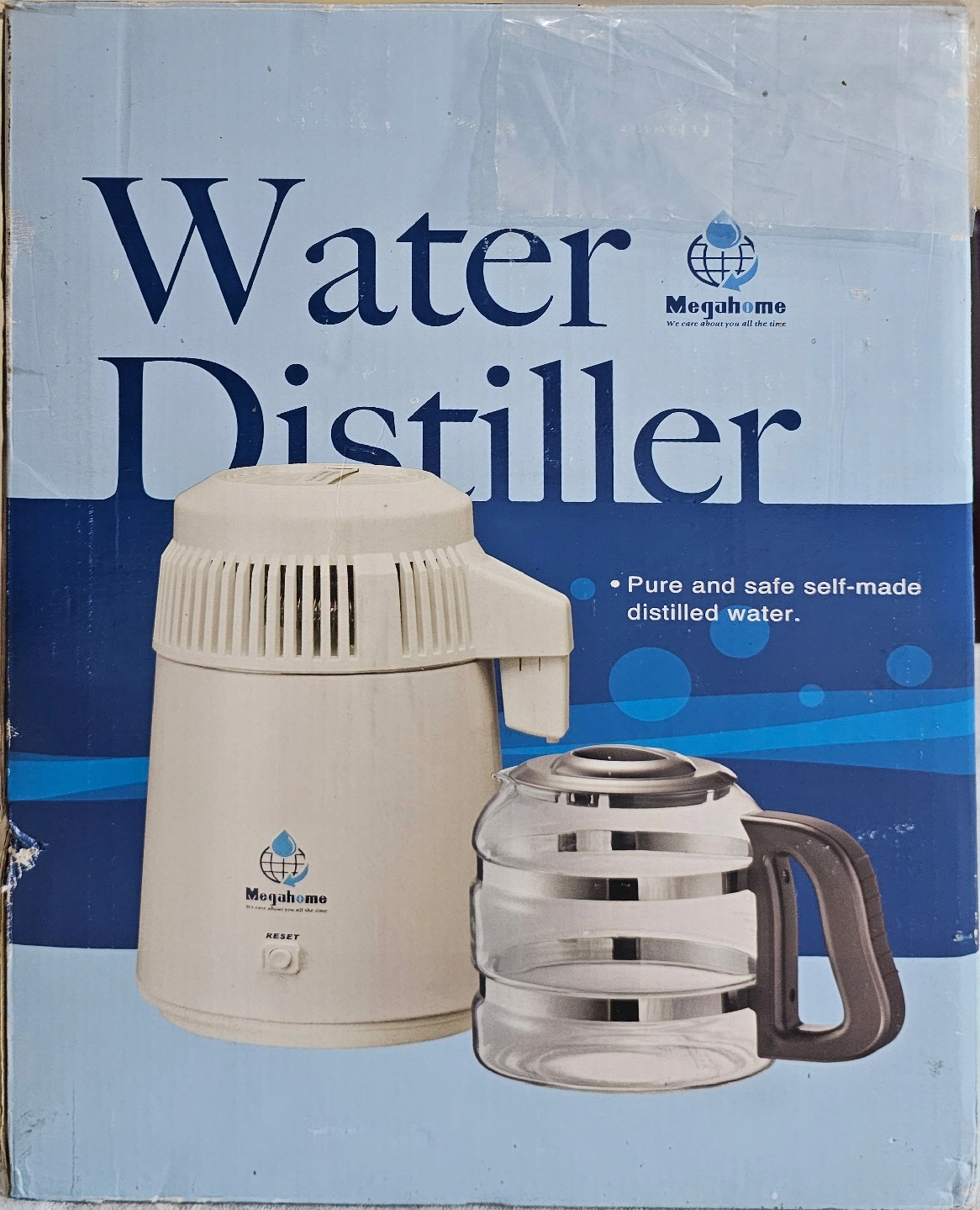 101Selling a Megahome water distiller in stainless steel and black. It comes with the box, as pictured. A great way to get pure and safe self-made distilled water!.Orig8nal price :555 $