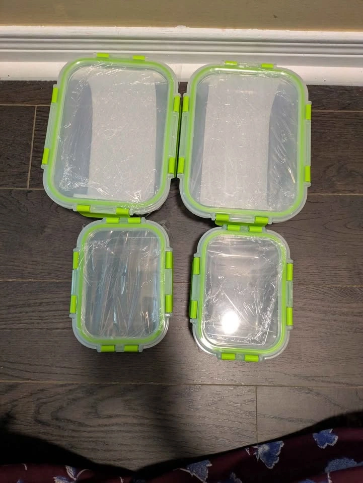 Brand new 4pc glass food storage containers set ( 34oz and 12oz)