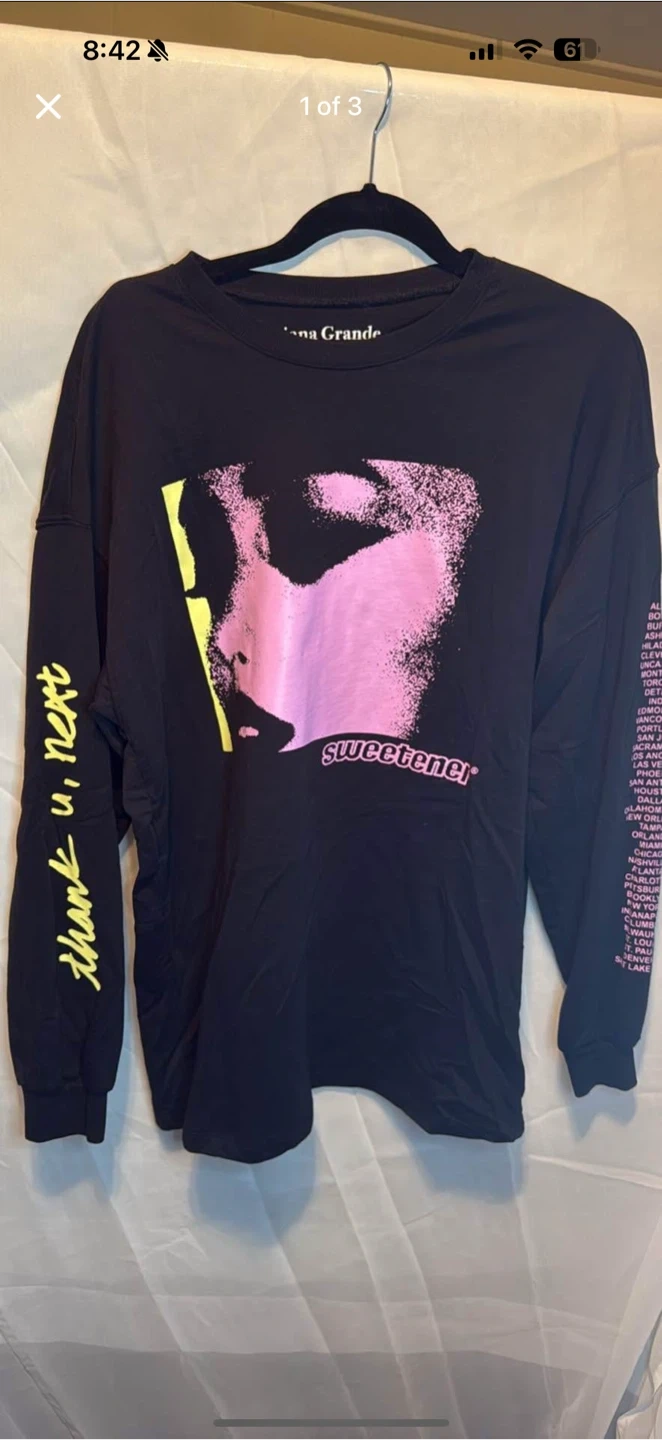 Buy & SellAriana Grande Sweetener SweatshirtAriana Grande Sweetener Sweatshirt$15Size Large. Pick up in SE Mapleridge near Acadia.ConditionLike newSizeLargeWHERE TO MEETMapleridge Crescent SoutheastView MapSELLERAnnabelleMaple Ridge595 reviews0 chats·1 favorites·4 views