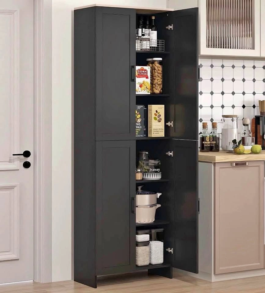 • 6-Tier Design: Offers generous shelving for dry goods, pots, or containers — with 4 enclosed doors to keep everything organized and dust-free.