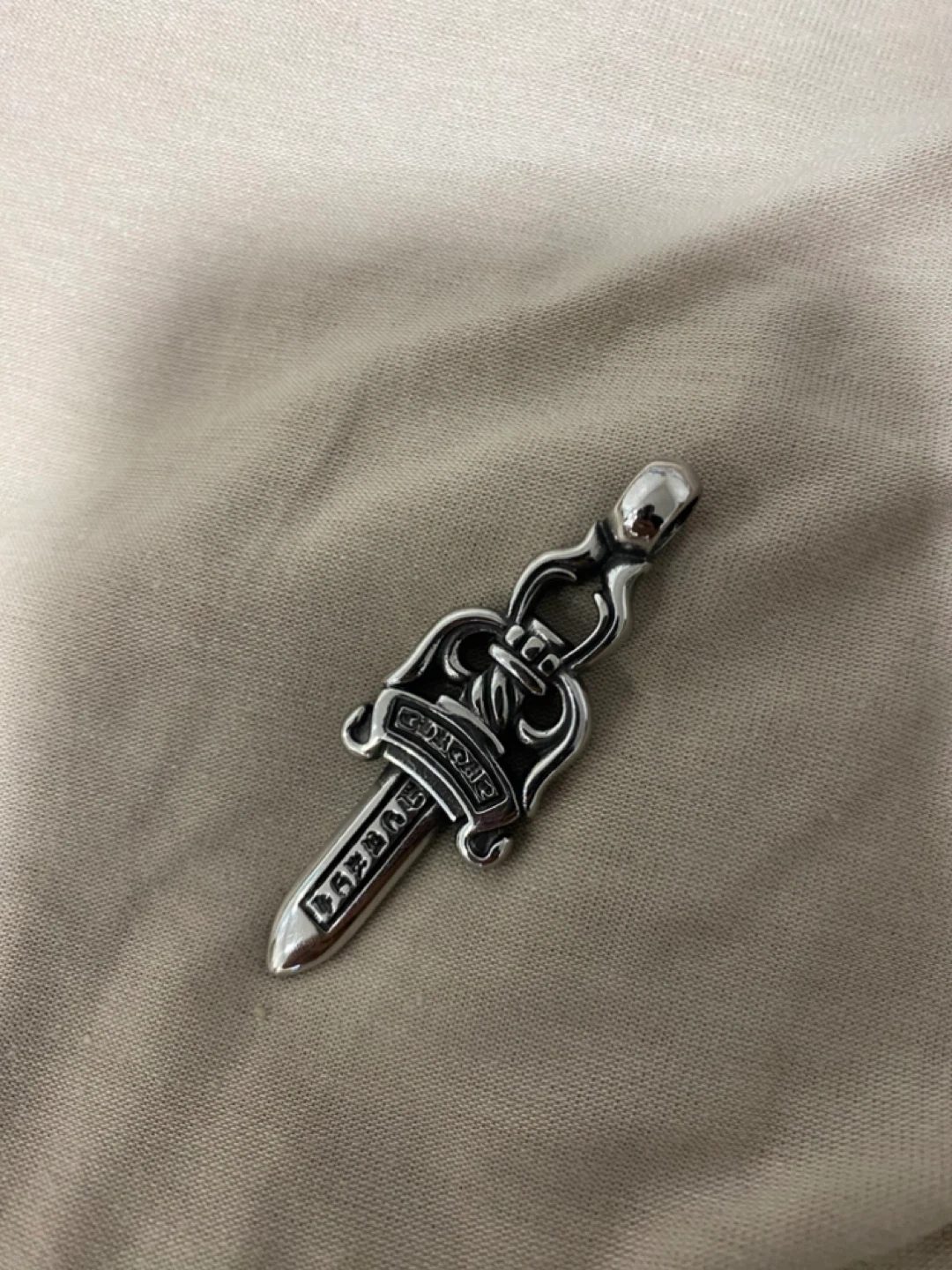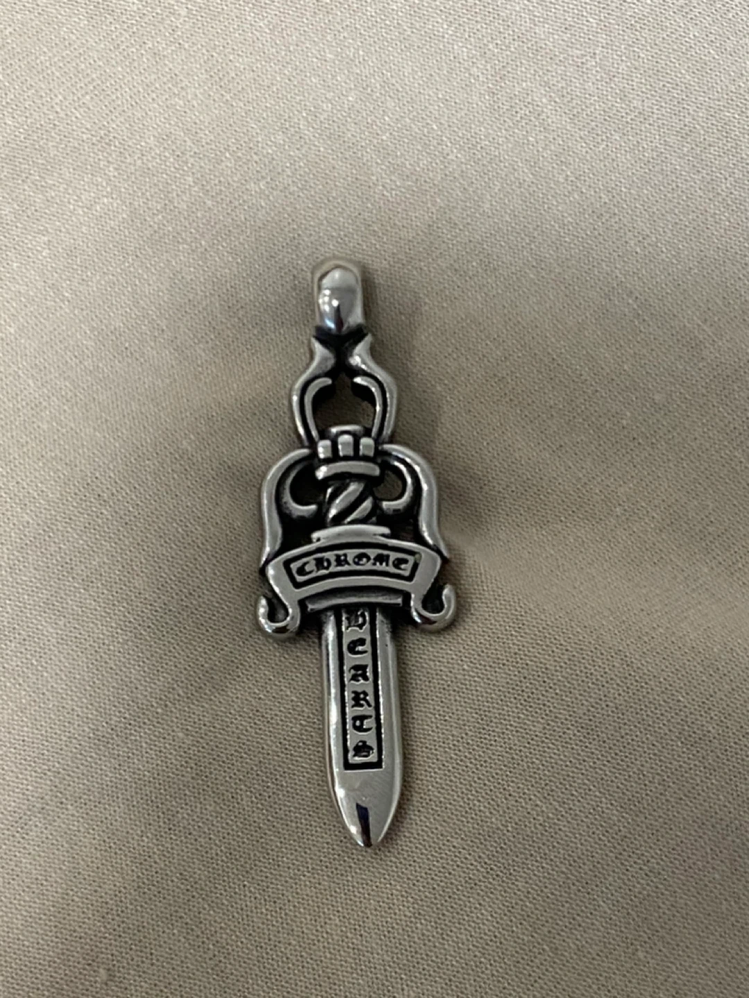 Selling a Chrome Hearts dagger pendant. It's in great condition and has a unique design. Perfect for adding a touch of edgy style to any outfit!