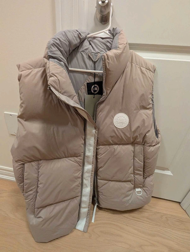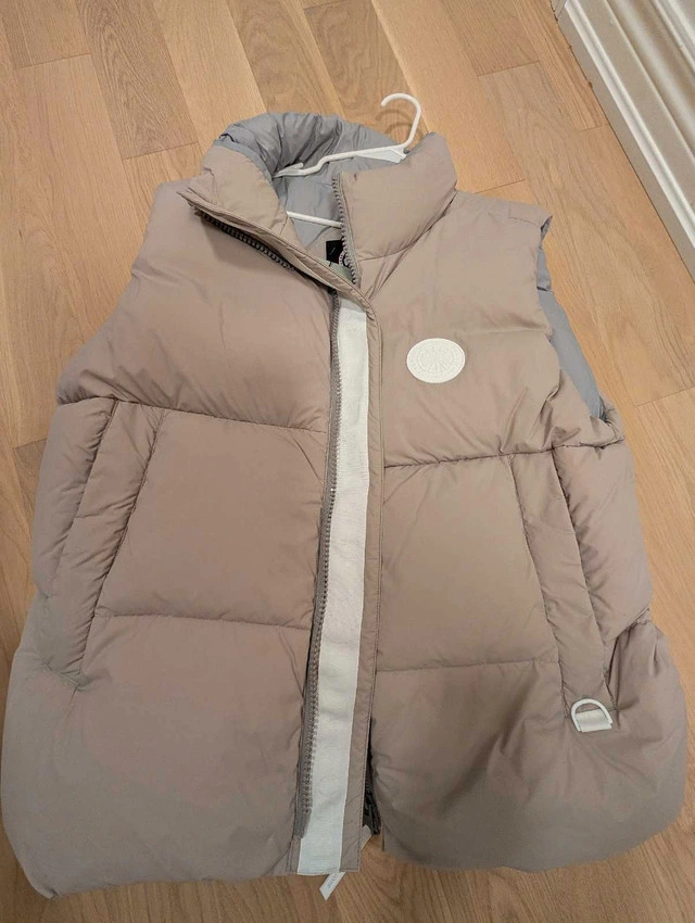10Snag this Brand NEW with tags Canada Goose Everett Vest in a stylish limestone colour, size 2XL! It's a versatile and lightweight vest perfect for layering, whether you're hitting the trails or running errands around town. It has a sleek design and practical features. This puffer vest is ready for anything. Features: * Colour: Limestone * Size: 2XL * Condition: New with tags * Brand: Canada Goose