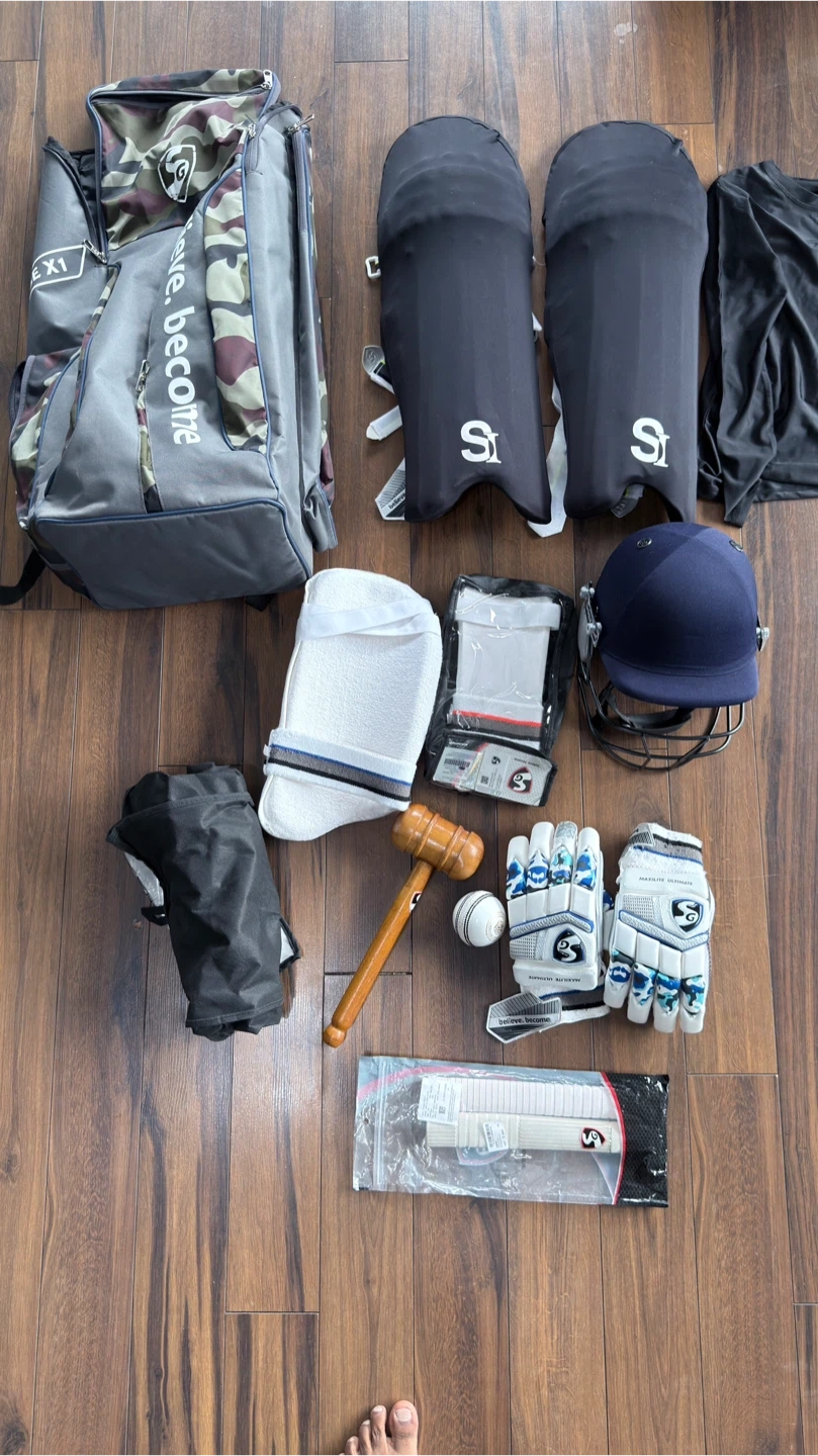 Selling a complete SG cricket kit! Includes a bag, pads, gloves, helmet, and other essential gear. Perfect for anyone looking to get into cricket or upgrade their equipment. All items are in good condition and ready for the season!