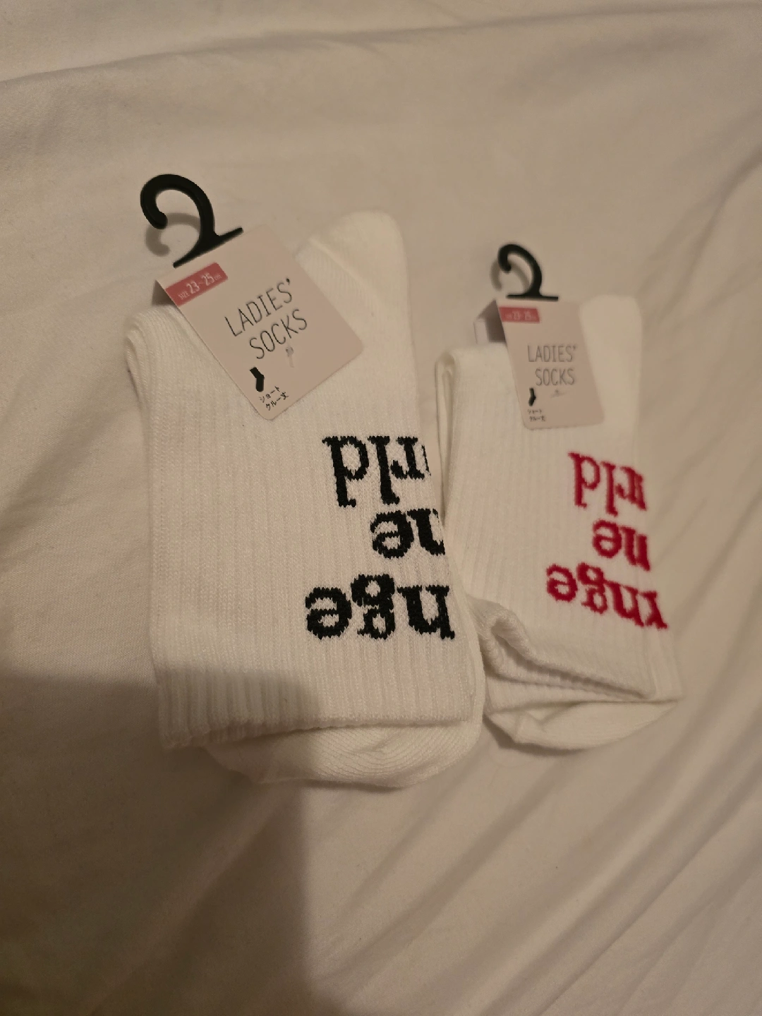 762Here are some brand new ladies' socks, size 23-25. They say 'change the world' on them in different colours! freebie of ONE Piece Manga pouch. All from Japan. Great gift to an Anime/Manga lovers of One Piece Luffy. Brand New with Tag. Firm 📌M1R1S1 beside Esso / Surrey Bus stop @Victoria Park Ave.