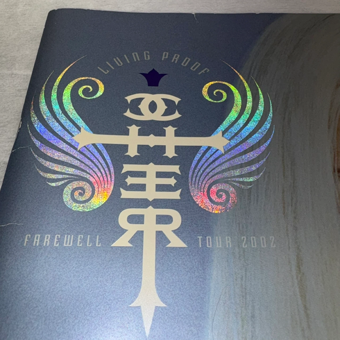Cher's 'Living Proof: The Farewell Tour' souvenir program from 2002. It features photos and details from the iconic tour. A great collector's item for fans! Some small dings on the spine and covers, but inside is in really good condition and the poster is intact. Own a piece of VINTAGE music memorabilia of an absolute icon