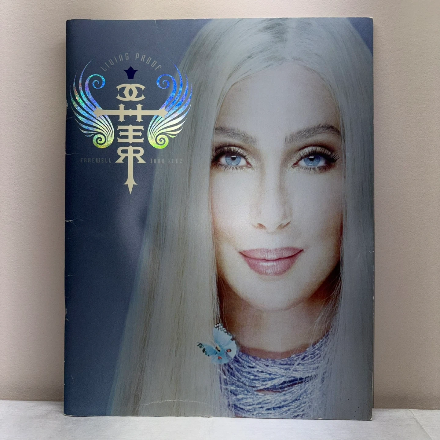 Cher's 'Living Proof: The Farewell Tour' souvenir program from 2002. It features photos and details from the iconic tour. A great collector's item for fans! Some small dings on the spine and covers, but inside is in really good condition and the poster is intact. Own a piece of VINTAGE music memorabilia of an absolute icon