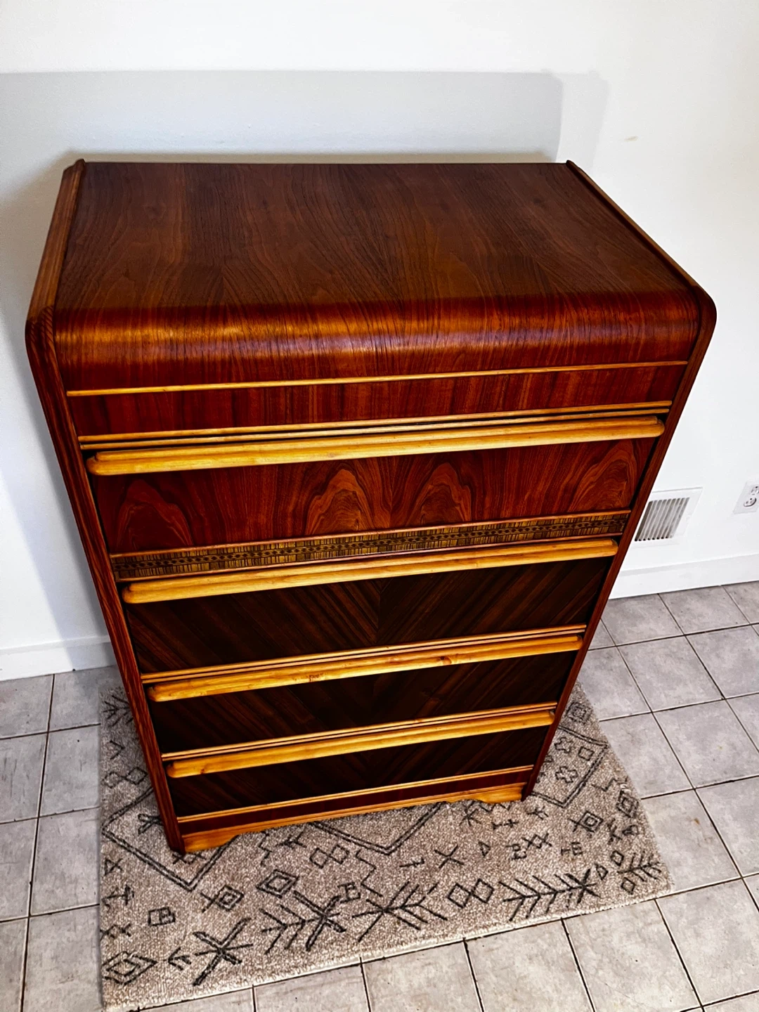 This vintage beauty has been completely restored head to toe. Beauty solid construction with dove tailed, lined smooth drawers ! 🤩