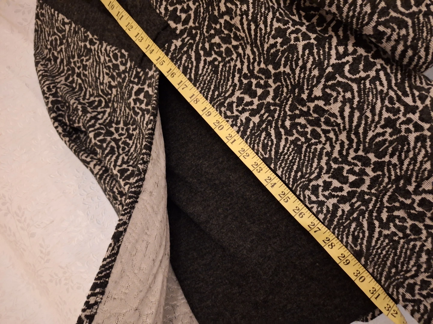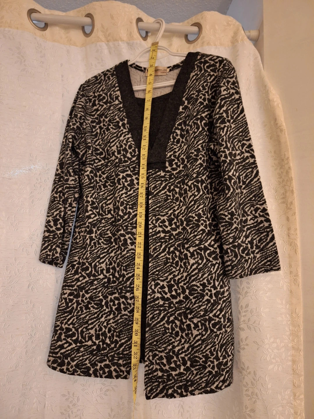 Pick up only! It's in size L. The top features an animal print pattern in black and beige/cream. It appears to be in good condition! It is like a two piece style.