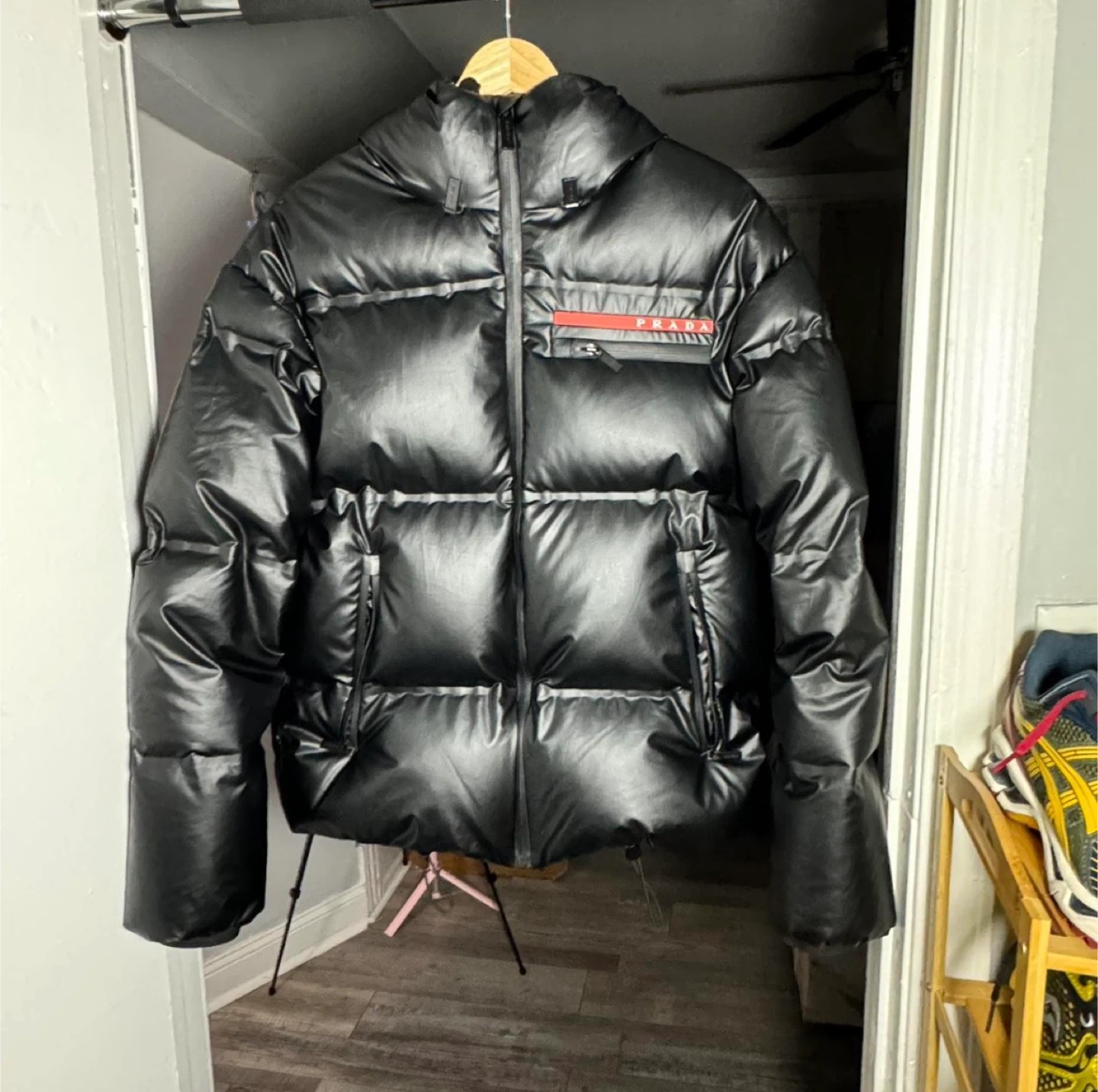 Selling a stylish Prada puffer jacket in black. It's brand new with tags and ready to keep you warm!