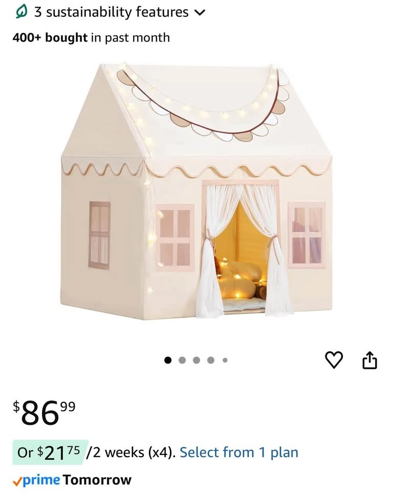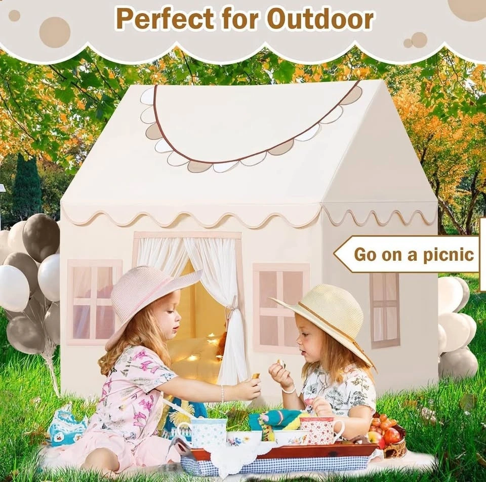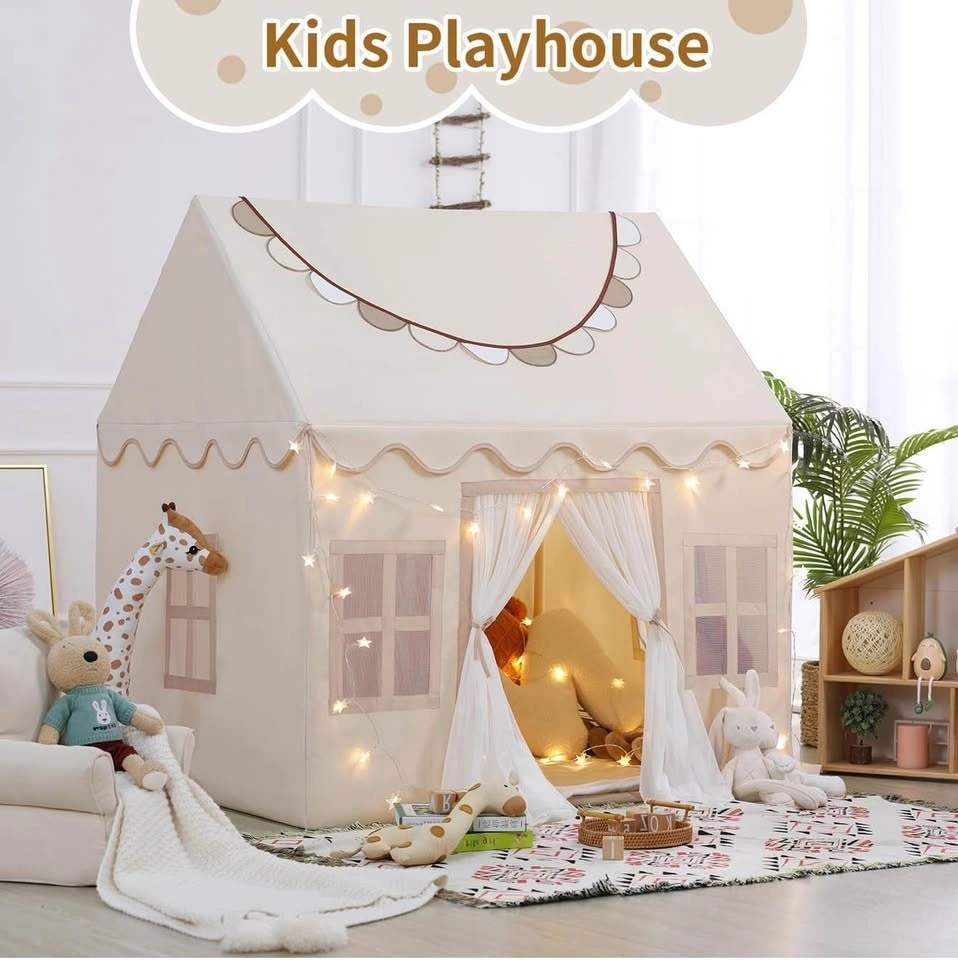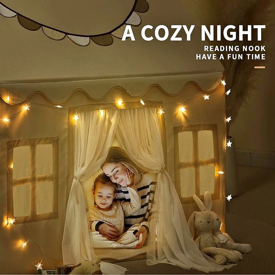 Kids Play Tent w/ Mat & Star Lights – Indoor Toddler Playhouse