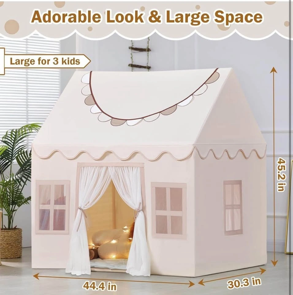 Wilwolfer Kids Tent with Mat, Star Lights, Banner -Tent for Kids Indoor Playhouse Toddler Tent Kids Play Tent for Ages 4-8 Girls Play Tent Playroom Furnitures
