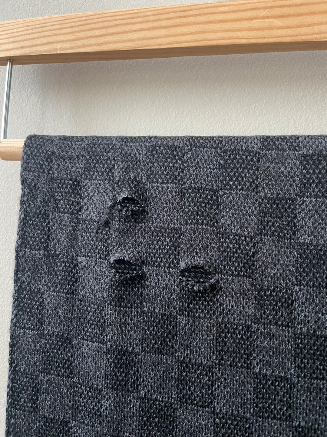 NOTE 1: Thread has come out at 3 squares outside layer near neck. SEE LAST TWO PHOTOS. I took it to a tailor who said it can be fixed but I decided to leave that for the buyer.