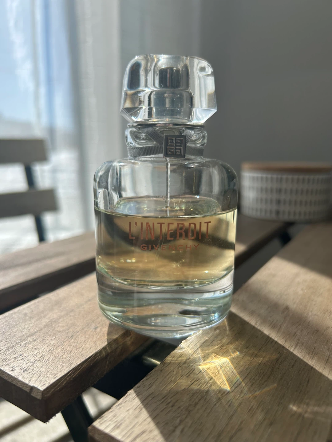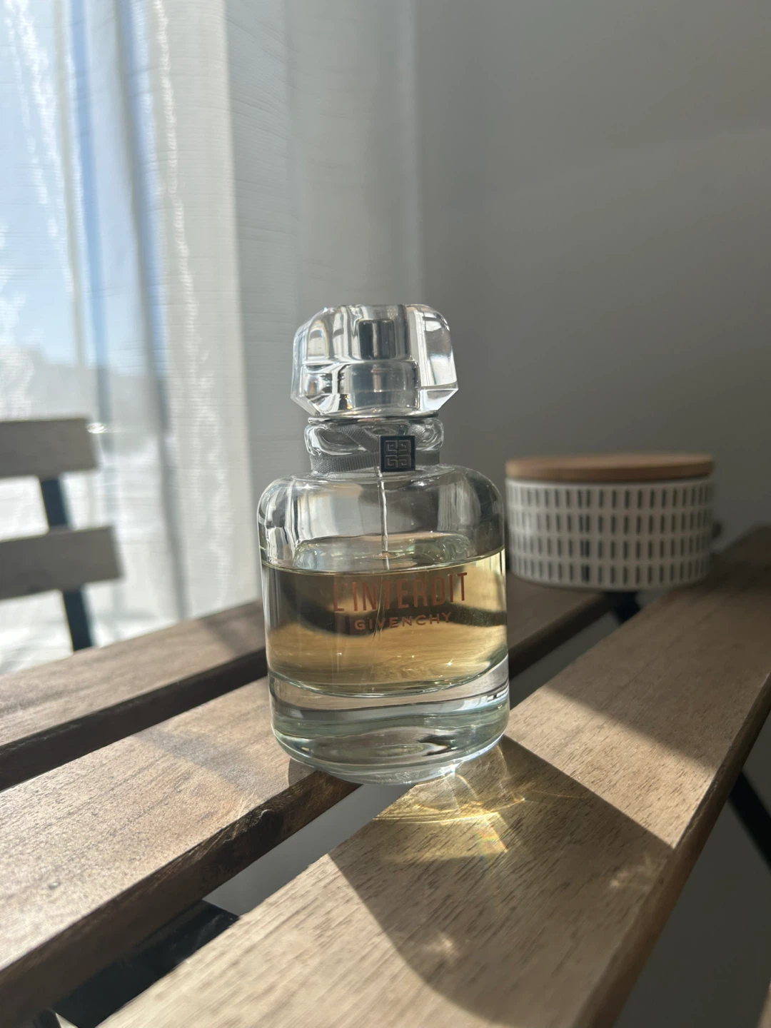 This is a bottle of Givenchy L'Interdit Eau de Parfum. It's a classic fragrance from a renowned brand. Perfect for daily wear or special occasions. (Lightly used)