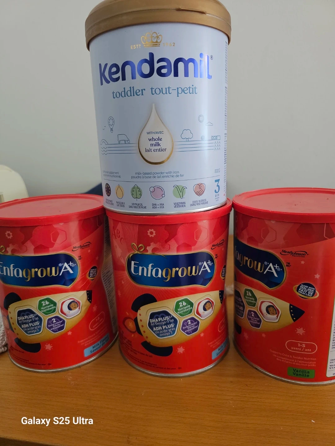 Bundle includes one tin of Kendamil toddler milk. Also includes two tins of Enfagrow A+ toddler formula. Expiry date is 2027 March and April . Great for toddlers 1-5 years old.
