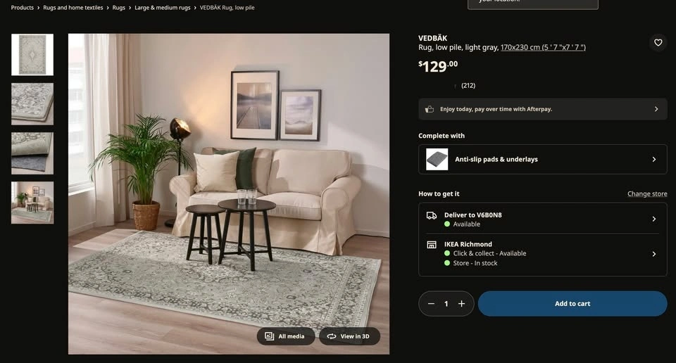 IKEA link: https://www.ikea.com/ca/en/p/vedbaek-rug-low-pile-light-gray-40528900/