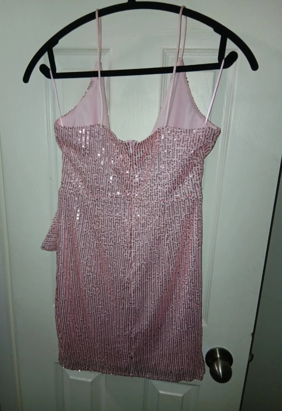 This sparkly sequin dress features flattering ruched details & an asymetric hem. A great choice for a night out or special occasion!