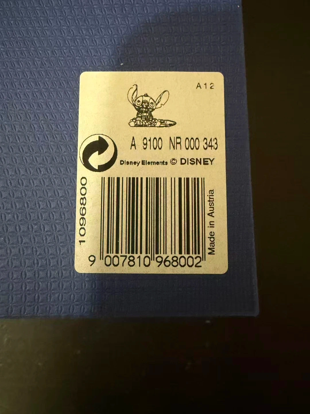 This Swarovski crystal figurine features the beloved Disney character Stitch. It's crafted with dazzling blue crystals and includes a gold-tone accent piece with 'Stitch' inscribed. Comes in its original Swarovski box brand new.