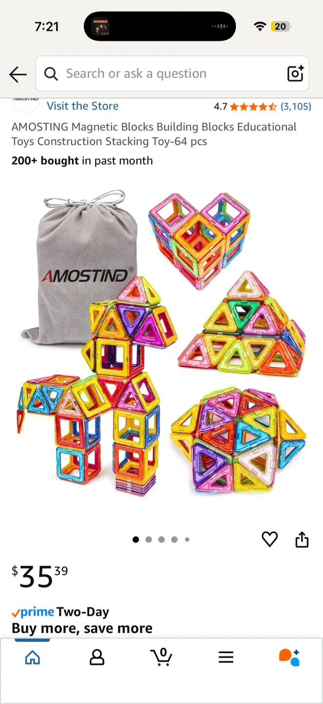 This AMOSTIND magnetic building block set comes with 64 pieces. It includes a storage bag for easy cleanup. These colourful blocks are great for creative play and building different structures!