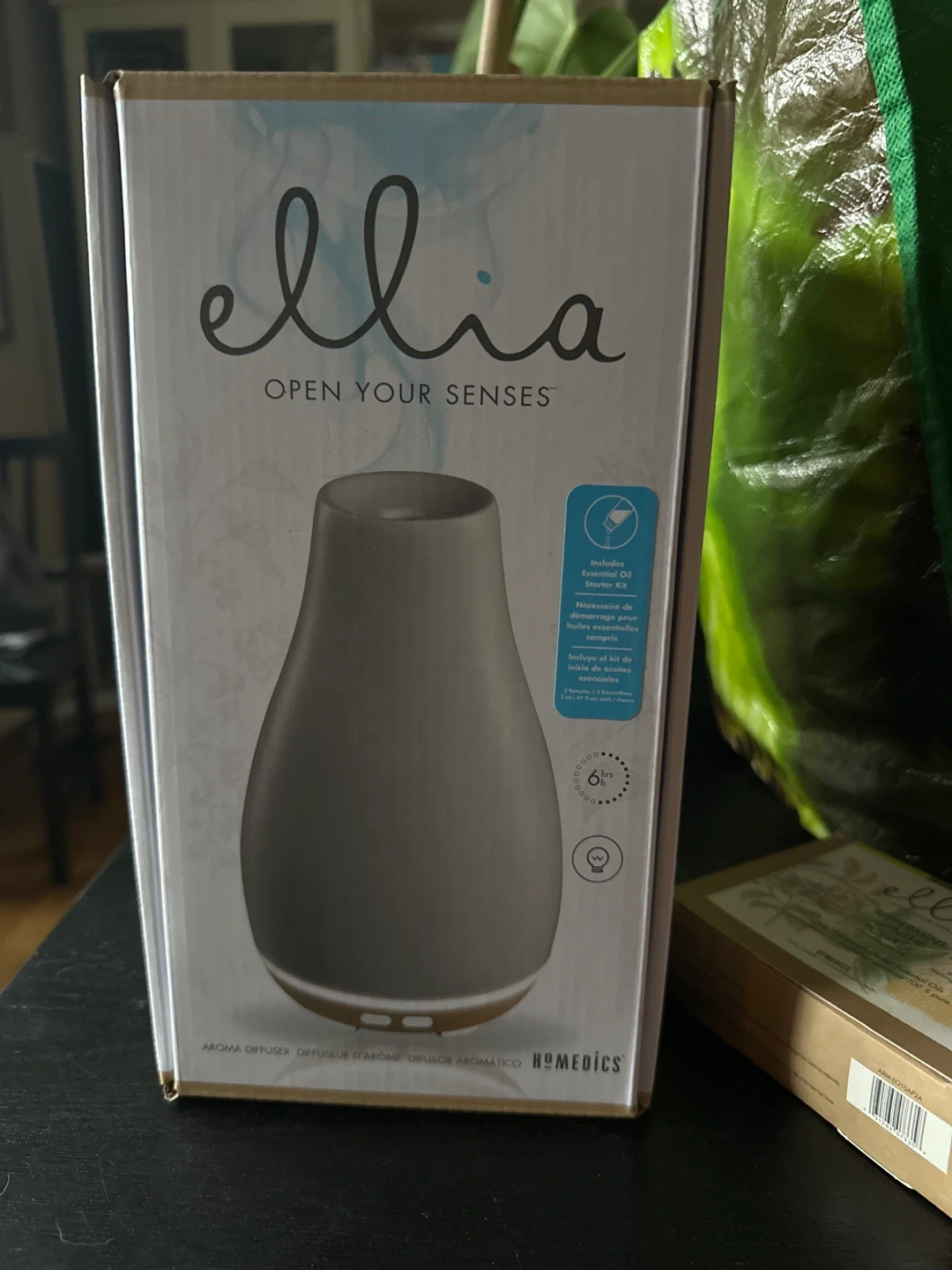 The item pictured is a HoMedics Ellia Blossom Ultrasonic Aroma Diffuser.