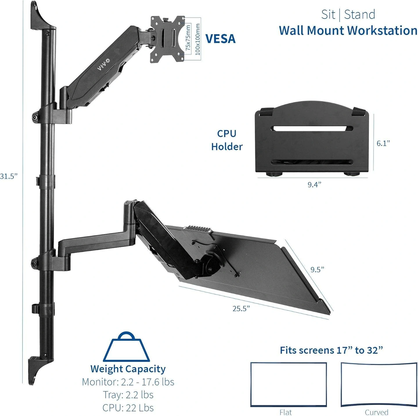 This VIVO sit-stand wall mount workstation is great for offices, hospitals, workshops, and more! It fits screens 17" to 32".