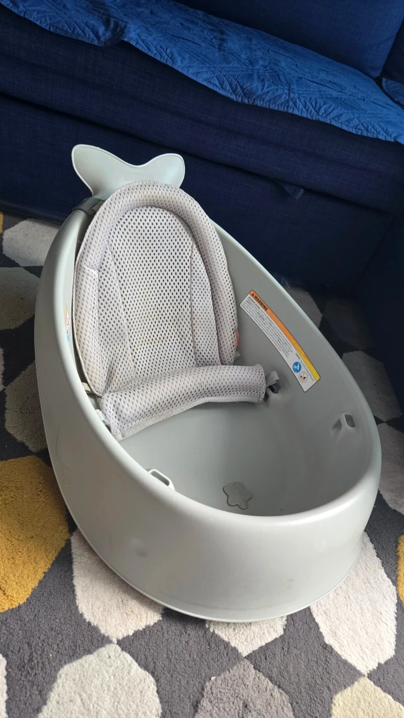 This grey whale-shaped baby bath tub offers three stages of support: from newborn sling to seated support for infants and older babies. Cash only. Pickup at Yonge-Eglinton area.
