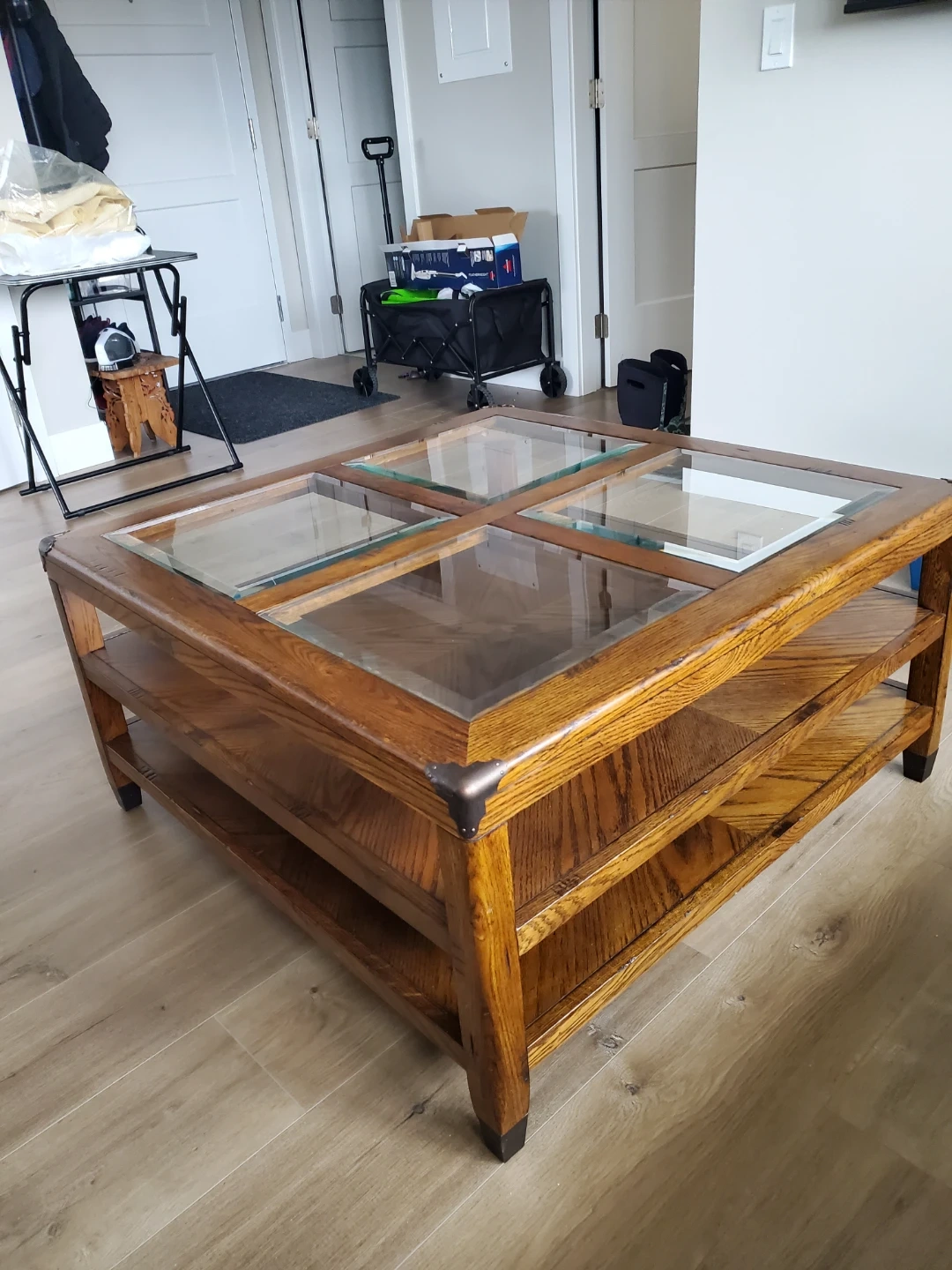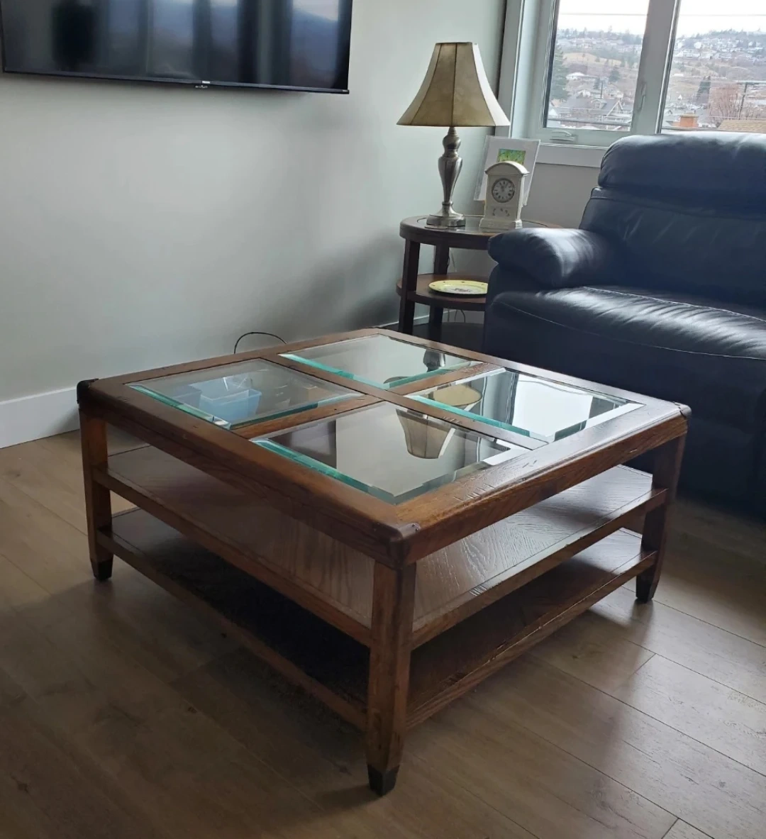Must go! Wooden Coffee Table with Glass Top