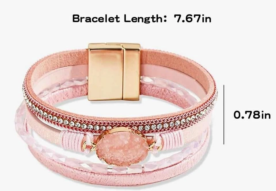 The punk leather bracelet is decorated with super shiny cubic zirconia, gold crystals, and druzy quartz. Get the eye-catching CZ bangle for your daily outfit. Dimensions: Length: 7.7 Inch, Width: 0.9 Inch. It is easy to put on and take off with the high quality clasp. The boho bracelet is made of top grade leather, comfortable to wear. The trendy layer bracelet is a fashion gift for women.