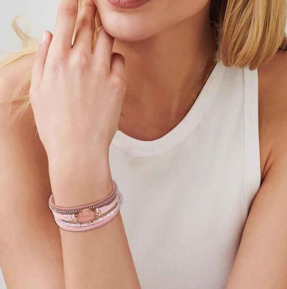 Leather Wrap Bracelet Boho Cuff Crystal Bead Clasp Jewelry