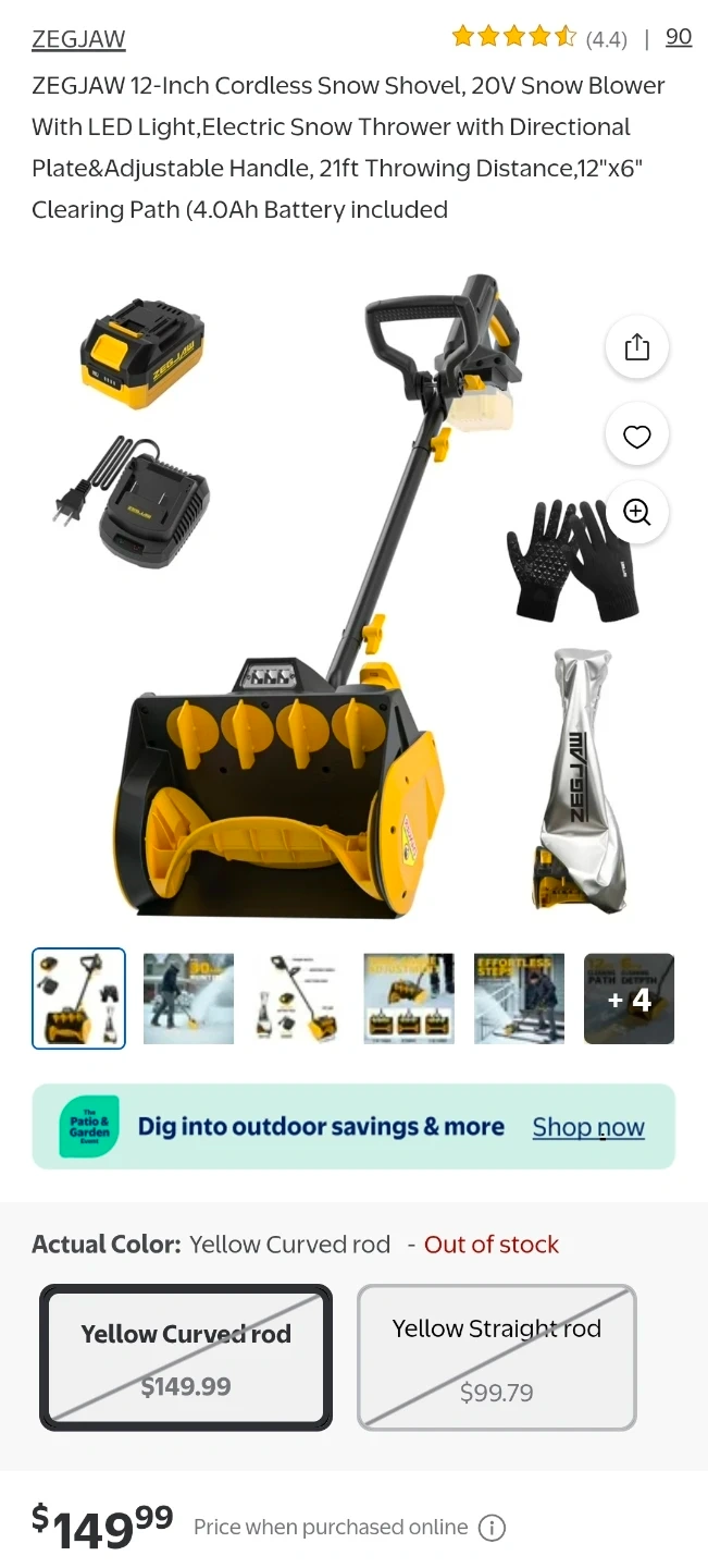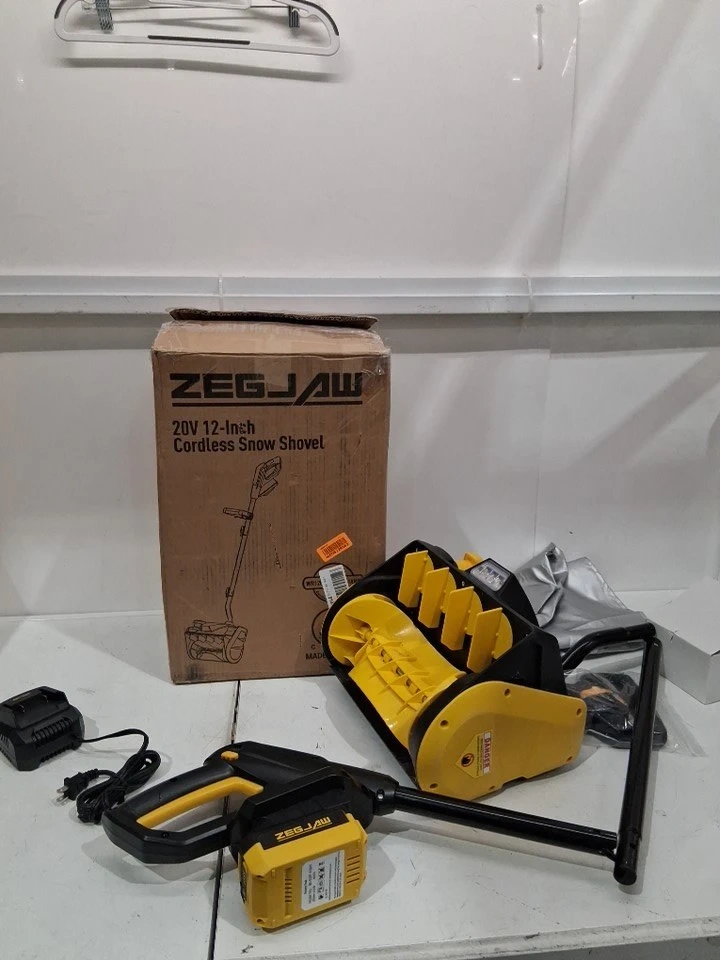 Clear your driveway with ease using this used ZEGJAW 12-inch cordless snow shovel, featuring a 20V 4.0Ah rechargeable lithium battery for up to 30 minutes of runtime and a directional plate adjustable by +/- 30 degrees for precise snow throwing.