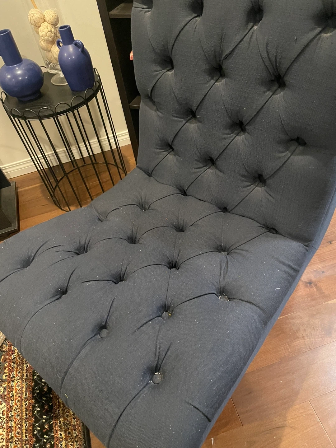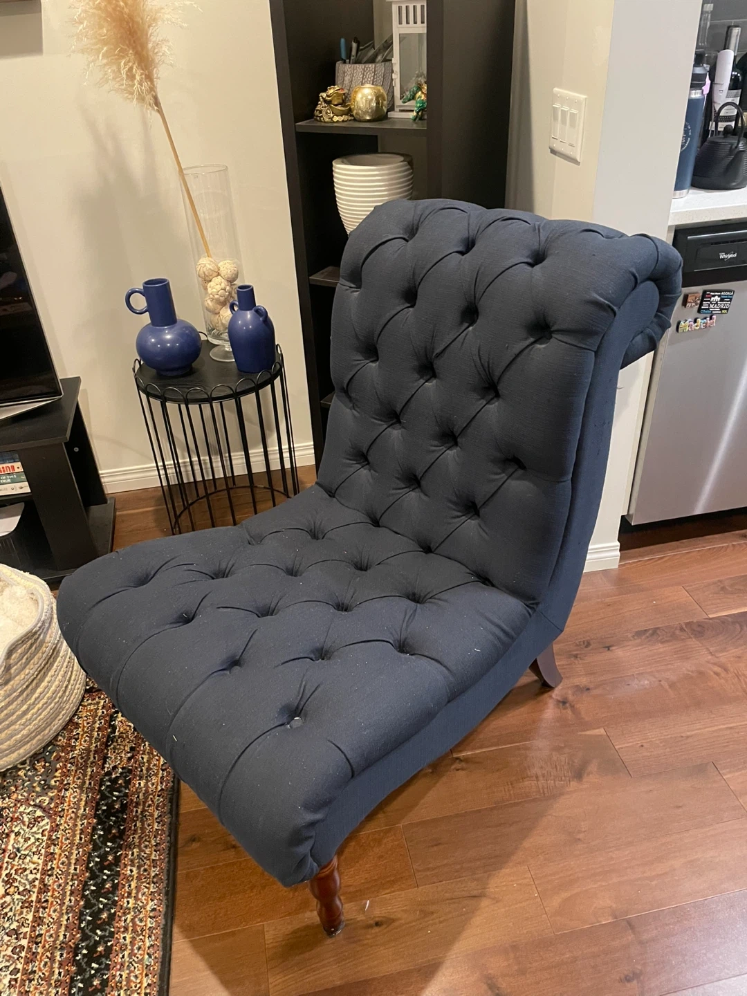 Buy & SellNavy Blue Accent ChairNavy Blue Accent Chair$40Navy blue accent chair. Sturdy and in good condition. Barely used- updating furniture Comes from pet free and smoke free home.WHERE TO MEETCheck LocationView MapSELLERverifiedGenMahogany781 review1 chats·8 favorites·169 viewsSEND CHAT TO SELLERHi Gen! I’m interested in your listing.Hi Gen! I’m interested in your listing.Get the Karrot app to chatSign In to chat