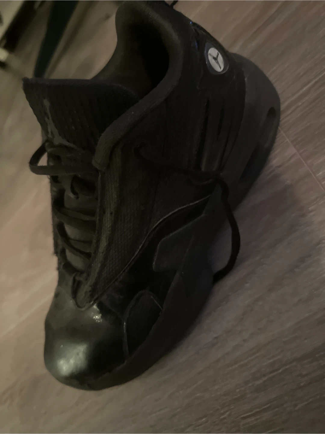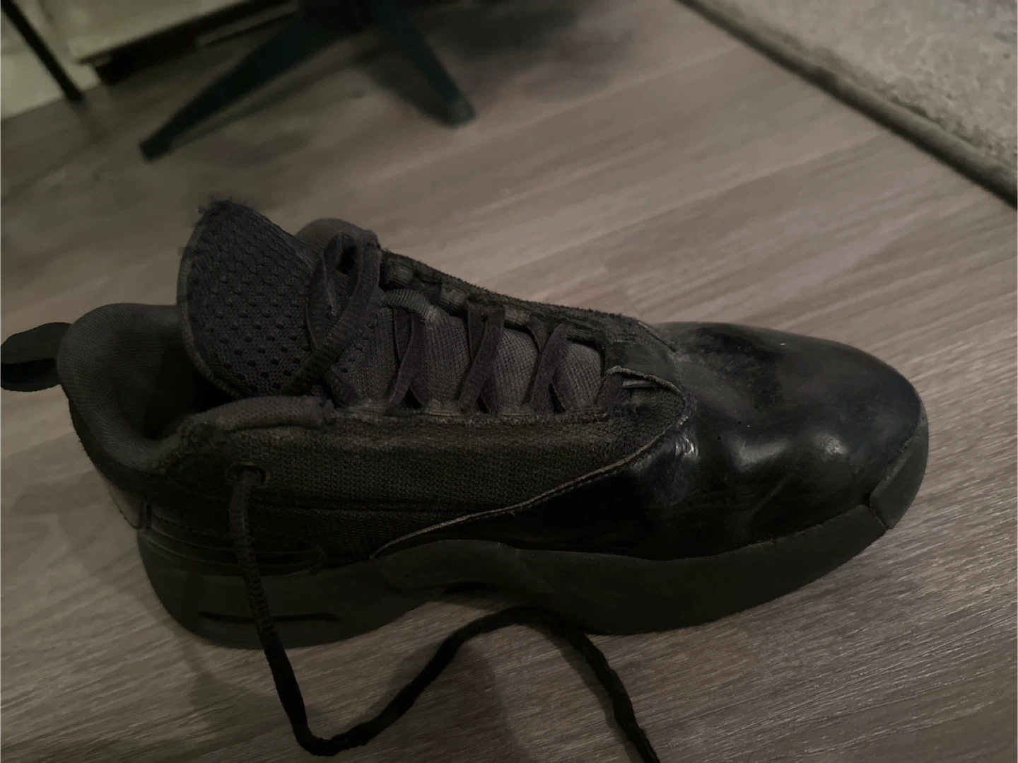 Selling a pair of Jordan Flight 45 High sneakers in black! They are size 6Y and in used condition. Laces are also a bit ruined