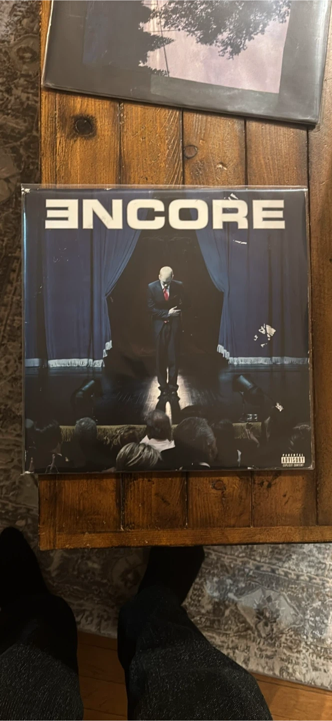 This is Eminem's Encore vinyl record. It's a great addition for any hip-hop fan's collection! The vinyl is in its original sleeve.