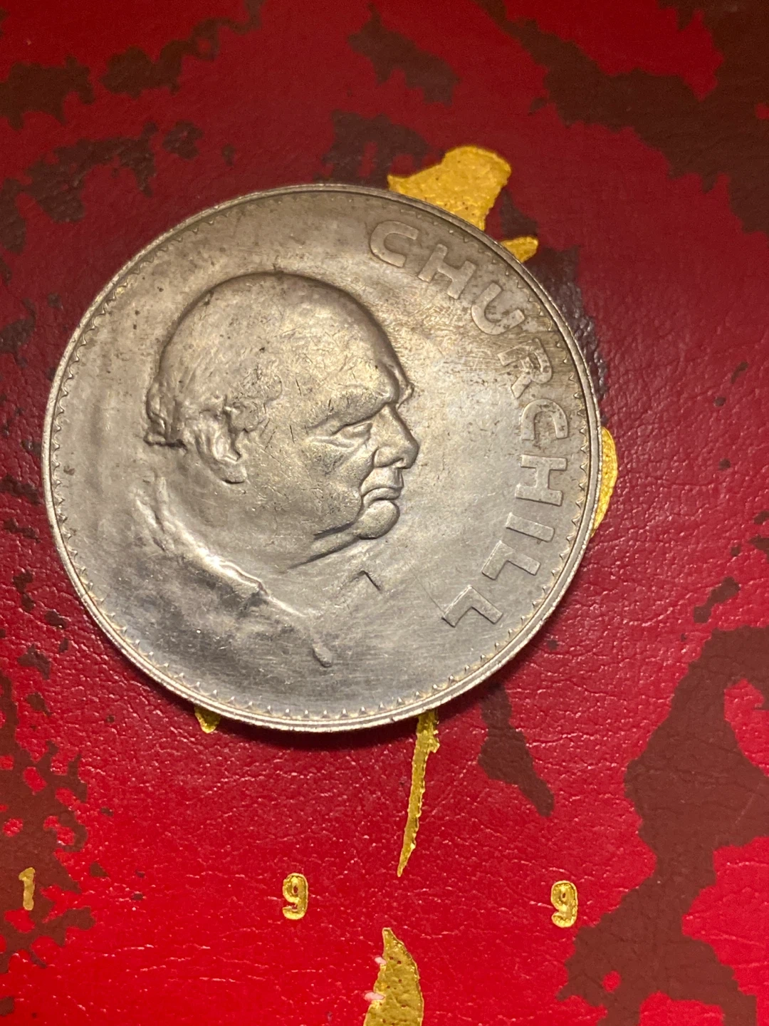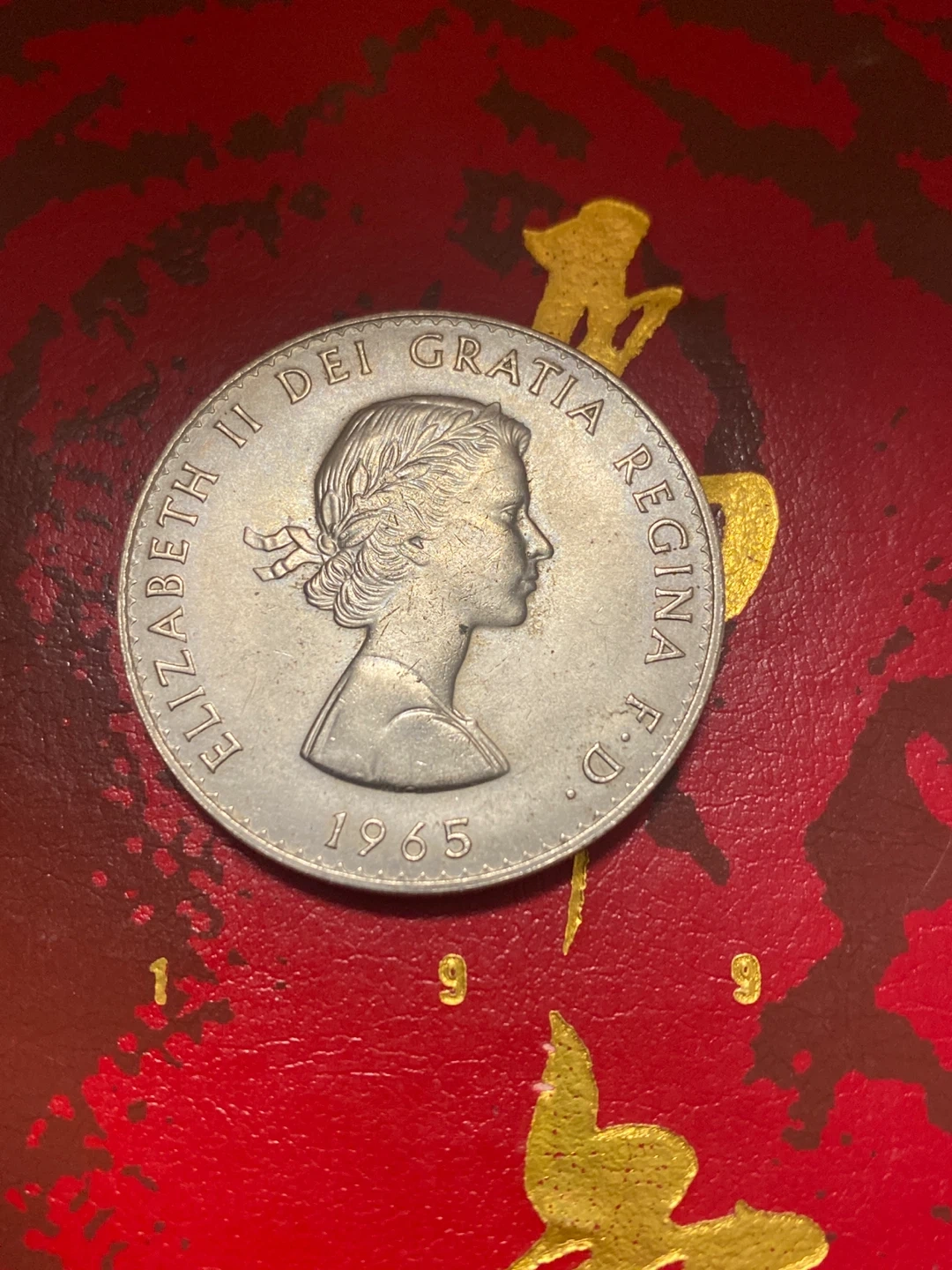 One 1965 coin featuring Queen Elizabeth II on one side and Winston Churchill on the other. A great collectible for history buffs!