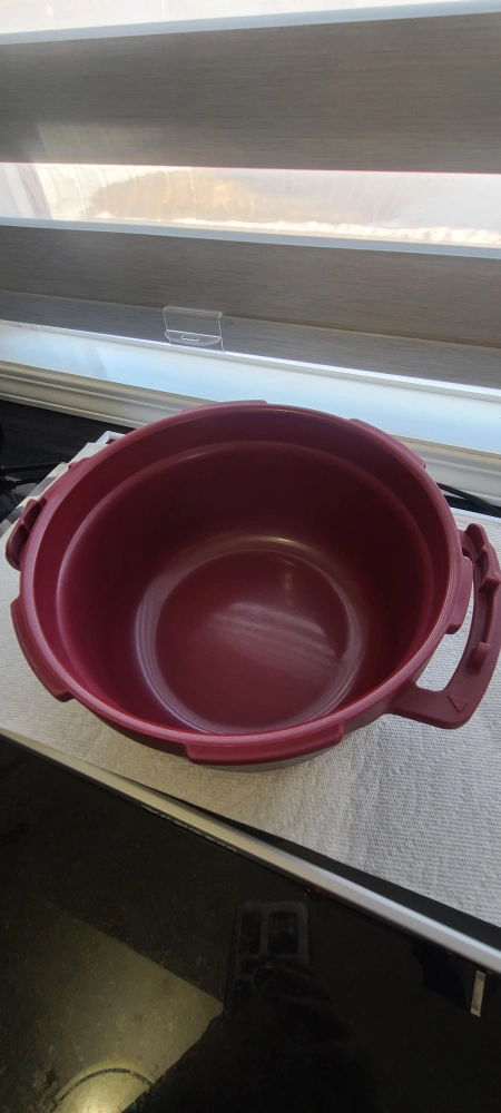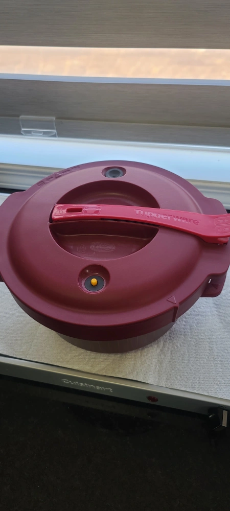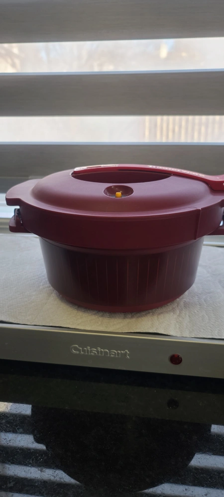 This is not a canning pressure cooker. It cooks full meals in less than half the usual time. Burgundy coloured microwave pressure cooker. Includes lid and base. New condition. Instructions included. Never used.